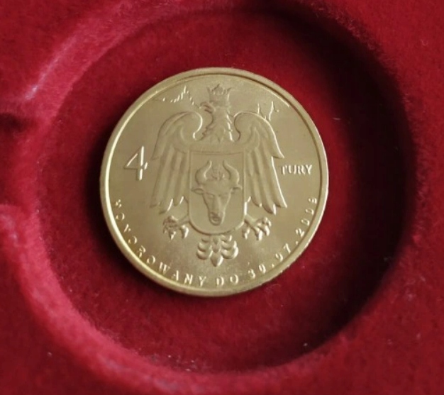 Аверс: Герб города Хойнице, на левой стороне номинал: 4, на правой стороне имя: ТУРИЙ, внизу полукругом надпись: ПОЧИТАЕТСЯ ДО 30.07.2009.