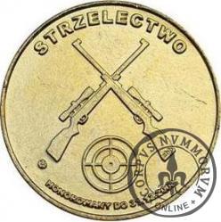 Реверс: Две скрещенные винтовки с оптическими прицелами, под ними стилизованная стрелковая мишень, под карабином с левой стороны символ Словацкого монетного двора, вверху полукруглая надпись. : СТРЕЛЬБА, внизу полукругом надпись : ПОЧТИТЬ ДО 31.12.2008.