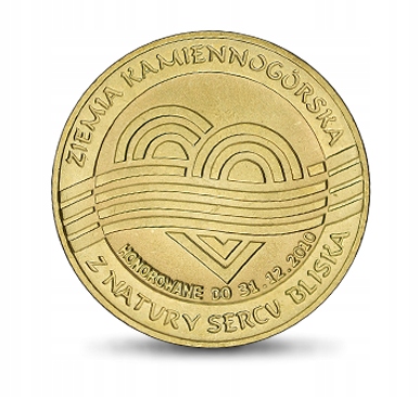 Реверс: В центре, по краю, логотип Каменногурского края. , над ней полукругом надпись: ZIEMIA KAMIENNOGÓRSKA, под ней полукругом надпись: Z NATURY SERCU CLOSE, вверху полукругом надпись: 10 ЛЕТ КАМЕННОГОРСКОГО УРАТА, внизу полукругом надпись: ПОЧИТАНО ДО 30.04.2009, на слева и справа символические камни, по три с каждой стороны.