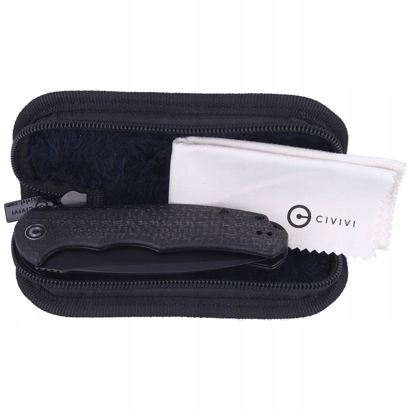 Головка складного ножа Civivi изготовлена из стали 9Cr18MoV. Нож оснащен широко используемым и хорошо известным лезвием Drop Point. Небольшая толщина режущей кромки в сочетании с высокой и вогнутой заточкой позволяют ножу отлично резать. Часть обухи клинка покрыта так называемым апперджимпингом, то есть ребристым рисунком, позволяющим безопасно опережать большой палец. Это облегчает работу с папками, особенно при выполнении работ, требующих большей точности и давления. Системы складывания и фиксации ножа Civivi Mini Praxis оснащены керамическими шарикоподшипниками. Liner lock делает его безопасным и надежным инструментом. Нож открывается флиппером. Лезвие выскакивает из рукоятки, а его конструкция создает своеобразное покрытие, предотвращающее соскальзывание руки на лезвие. Рукоять складного ножа Praxis Civivi Рукоять Civivi Praxis изготовлена из микарты, окрашенной в черный цвет. Грубая фактура подкладки позволяет ножу надежно лежать даже в потных и грязных руках. Благодаря открытой конструкции инструменты легко чистятся и смазываются. Папку также можно носить в нейлоновом чехле на молнии. В комплект также входит салфетка из микрофибры для легкой очистки