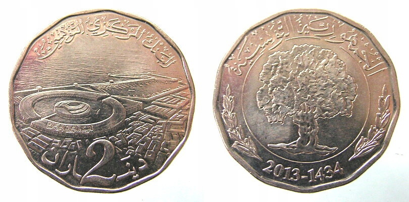 N1042. ТУНИС, 2 ДИНАРА, 2013 ГОДА