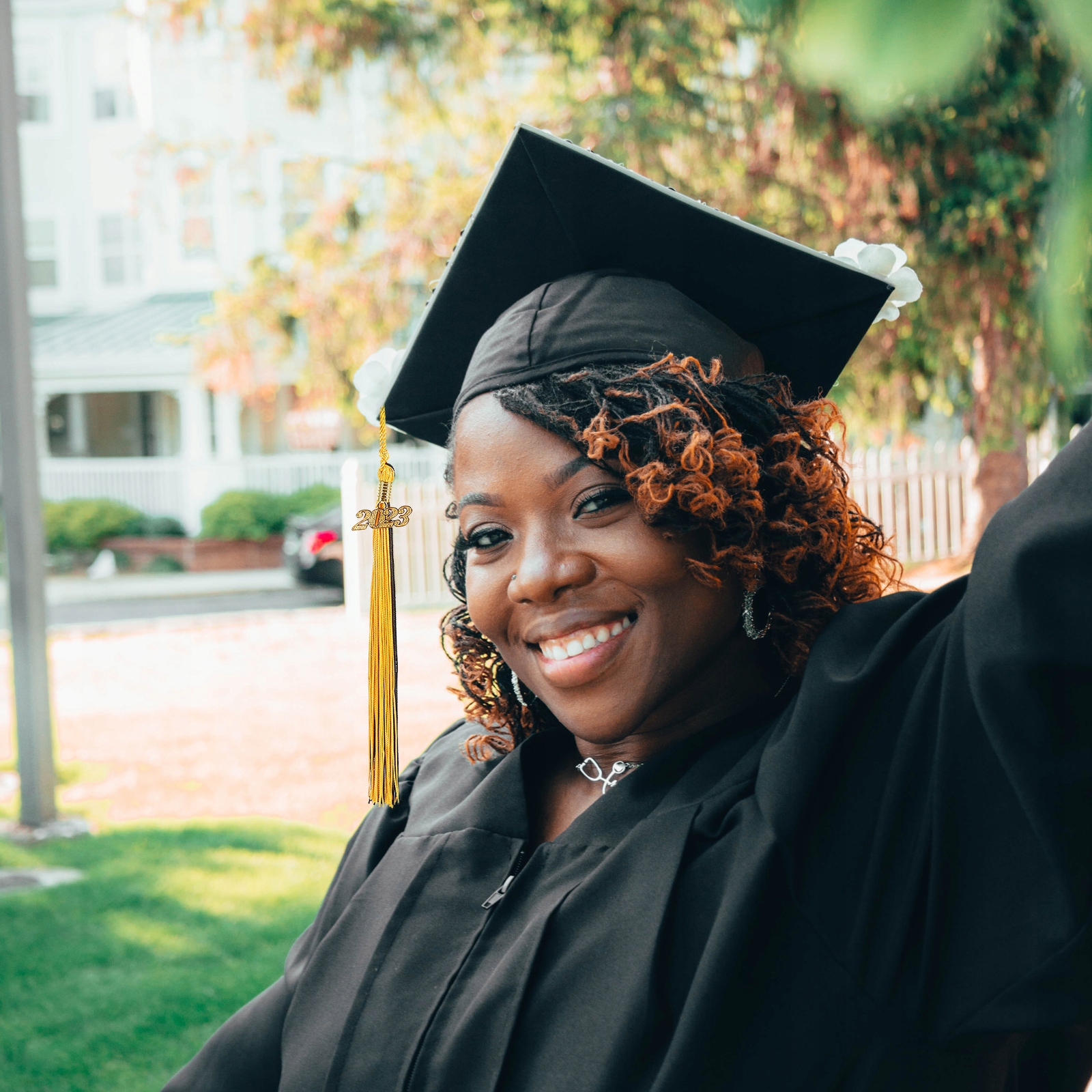 Выпускная шапка с бахромой и кулоном 2023