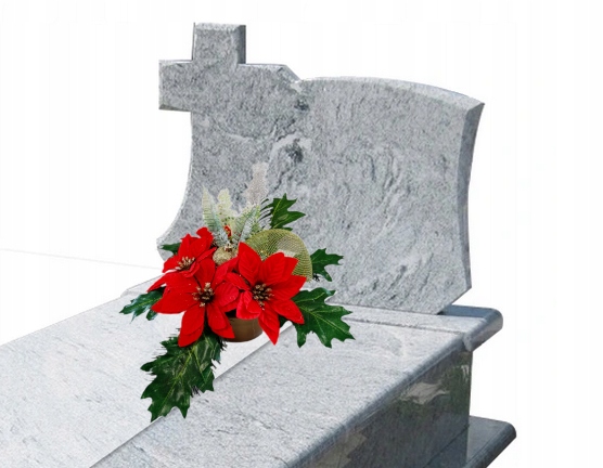 Поэтому мы предлагаем Вам красивую надгробную композицию, которая выполнена из искусственных цветов высочайшего качества. Необыкновенно красиво и нарядно смотрится головной убор, украшенный искусственными цветами, листьями и рождественскими аксессуарами на надгробии в вазе. .