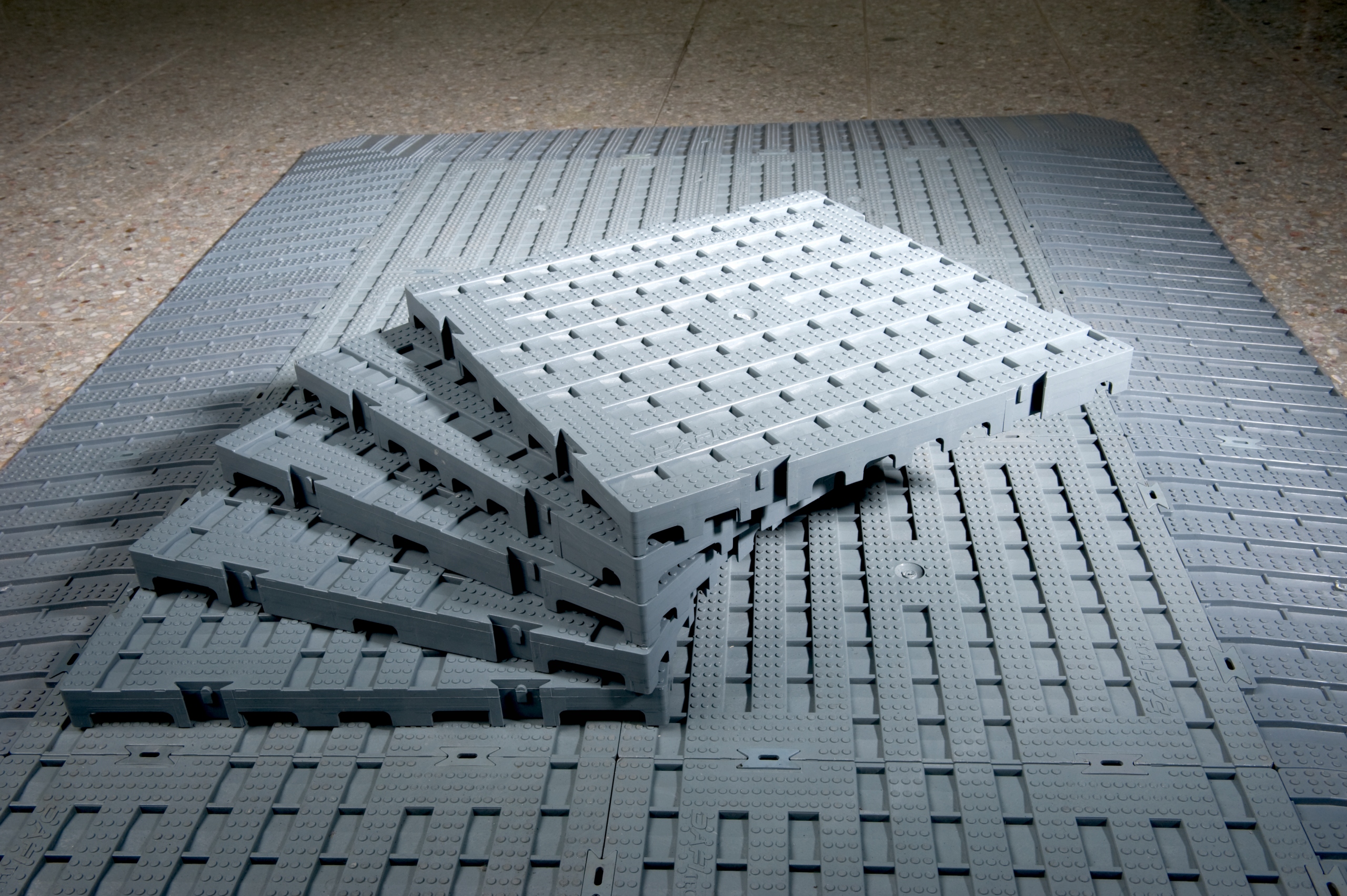 Модульный промышленный пол можно в любой момент снять и установить заново в другом месте.
