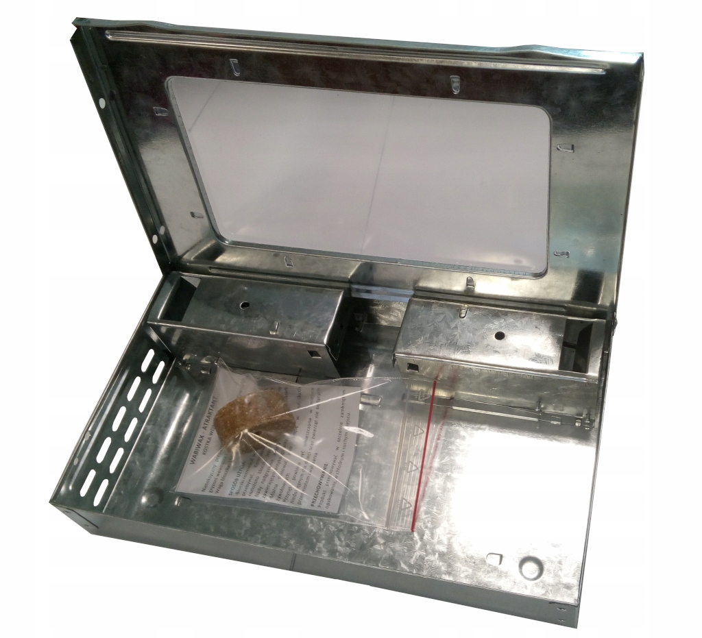 В нашей ловушке для грызунов в верхней части имеется пластиковое окошко, через которое мы можем следить за количеством грызунов внутри ловушки.