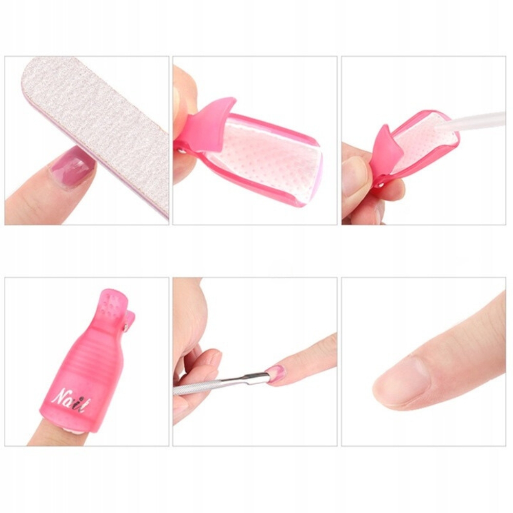 ✨НАБОР 10 ЗАЖИМОВ ДЛЯ НОГТЕЙ ГИБРИДНЫЙ ГЕЛЬ ДЛЯ СНЯТИЯ ЛАКА РОЗОВЫЙ✨