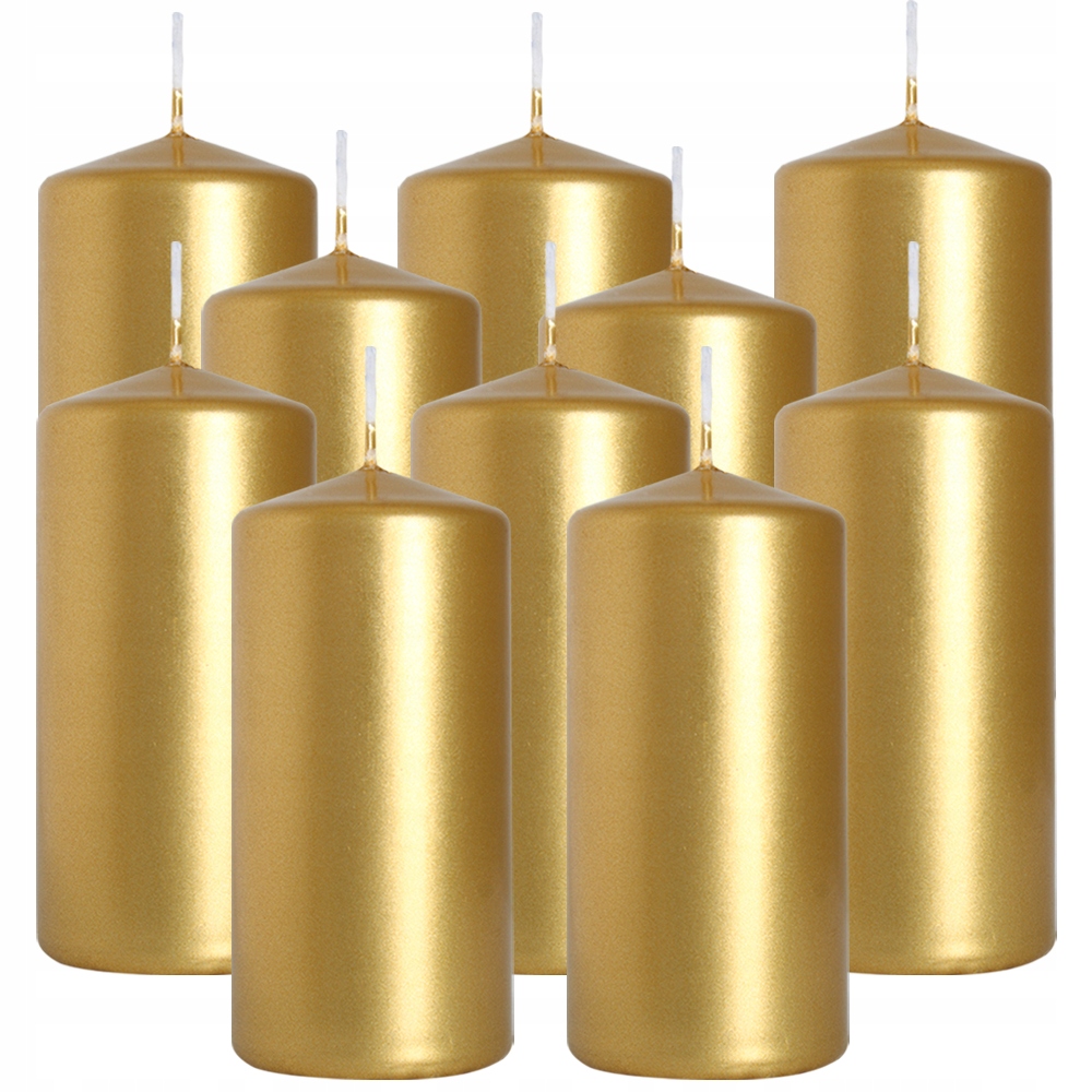 НАБІР 10 СВІЧОК НАСТІЛЬНИХ ЦИЛІНДР КЛАСИЧНА СВІЧКА 10см ЗОЛОТА РІЗДВЯНА