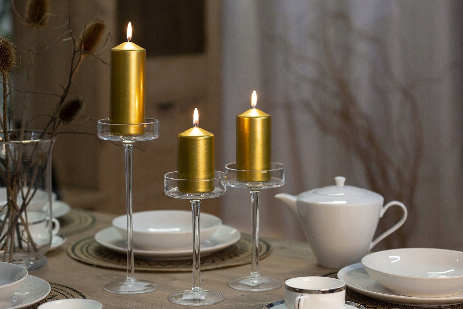 Набор из 10 декоративных свечей, цилиндр 10см, 20ч золото BISPOL