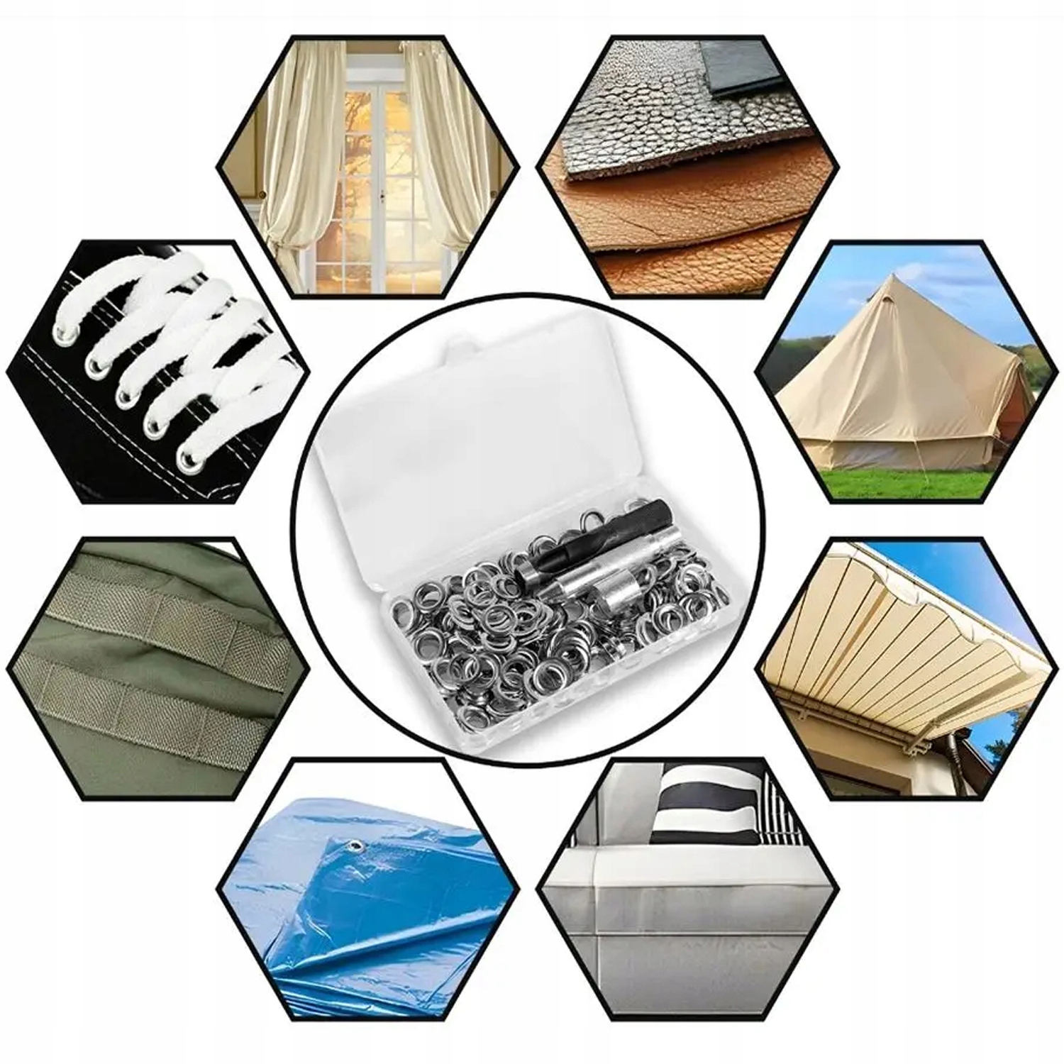 ✅ Универсальное использование: Эти прочные водонепроницаемые люверсы для брезента подходят для джинсовой ткани, холста, брезента, палаток, навесов и других тканей или других материалов толщиной менее 1 мм.