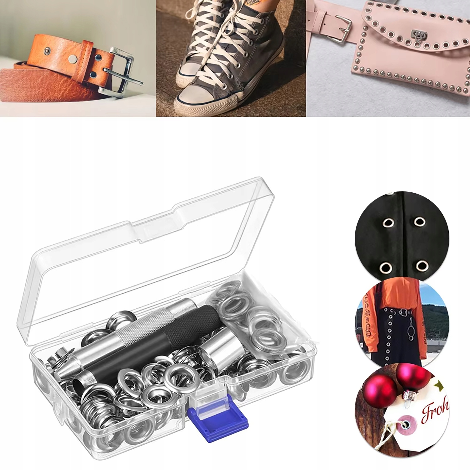 ⭐ В комплект люверсов входит фреза, согласующий штифт и 100 комплектов люверсов (в каждом наборе по 1 шт.). петелька и 1 шайба) и место для хранения