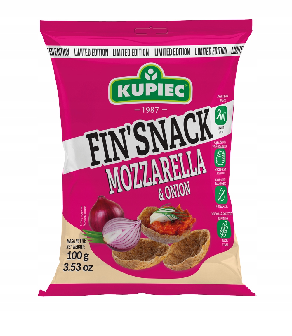 Ржаные закуски FIN'SNACK MOZARELLA&ONION — идеальная закуска или основа для ваших собственных композиций.