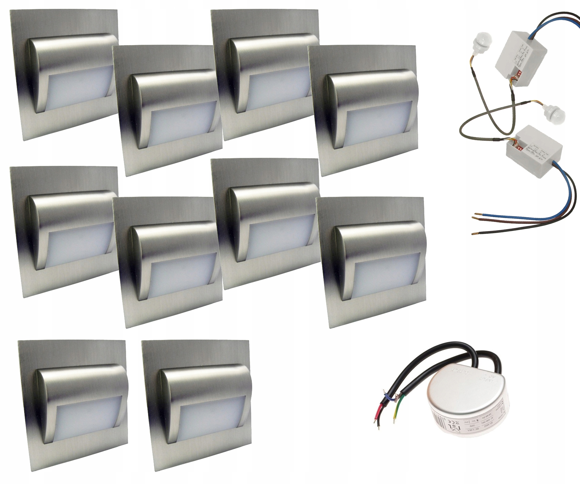 10 x 1 лестничный светильник, 2 Вт SATIN SILVER с выбором цвета света: ТЕПЛЫЙ, НЕЙТРАЛЬНЫЙ или ХОЛОДНЫЙ