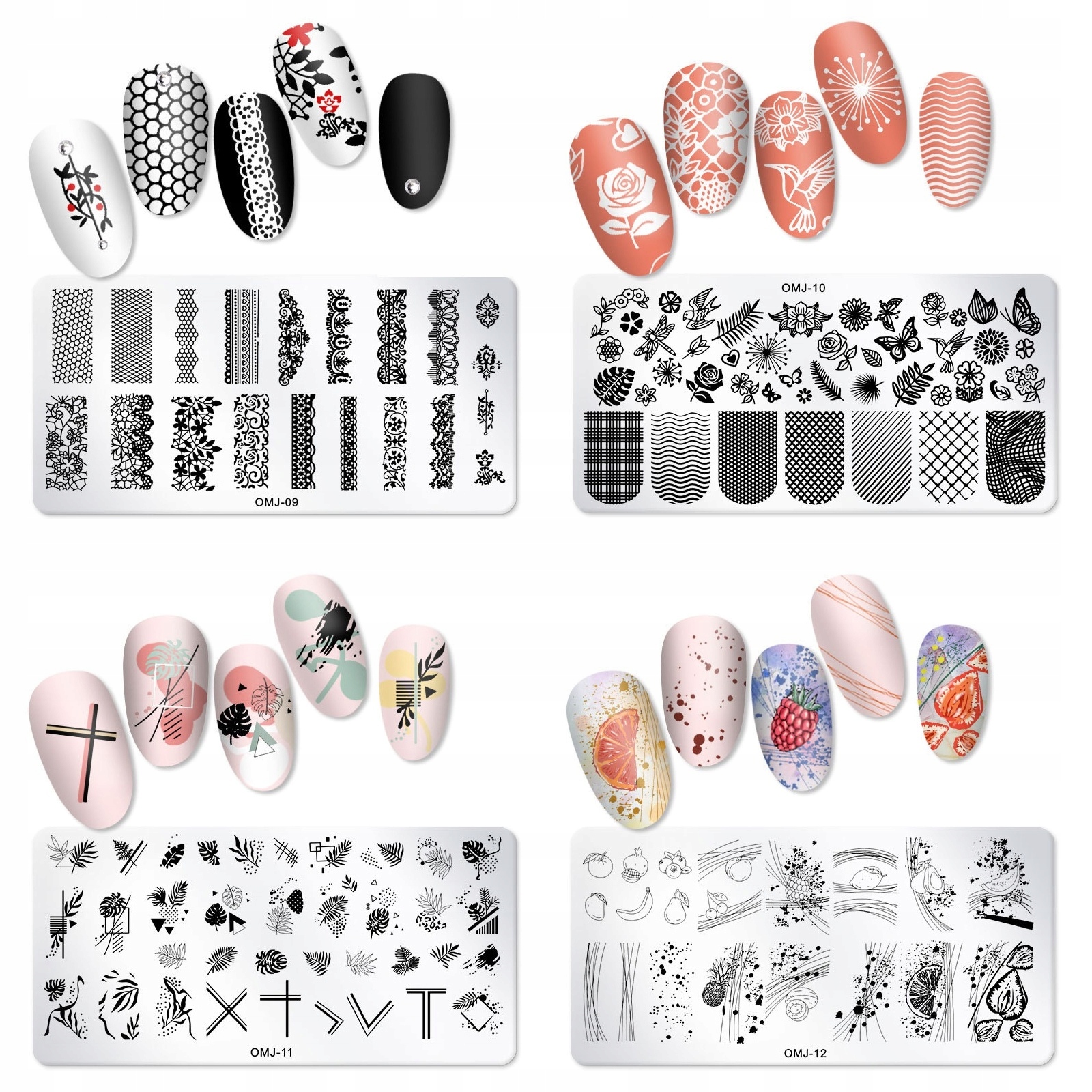 набор из 4 пластин украшения гвоздей с использованием метода штампа