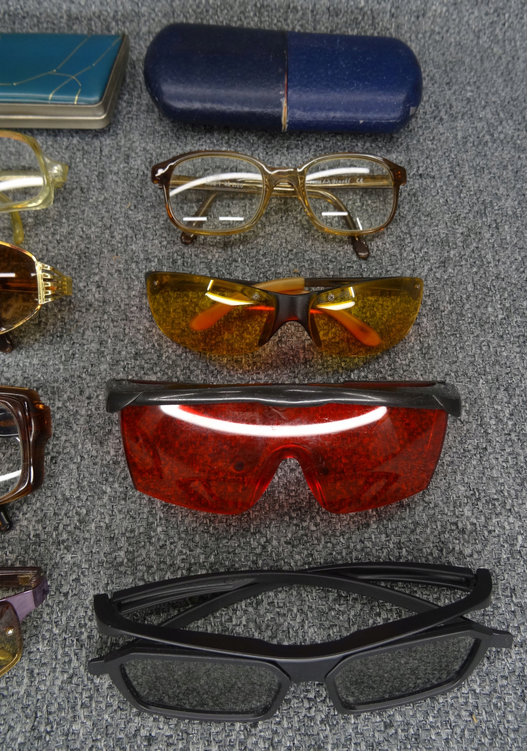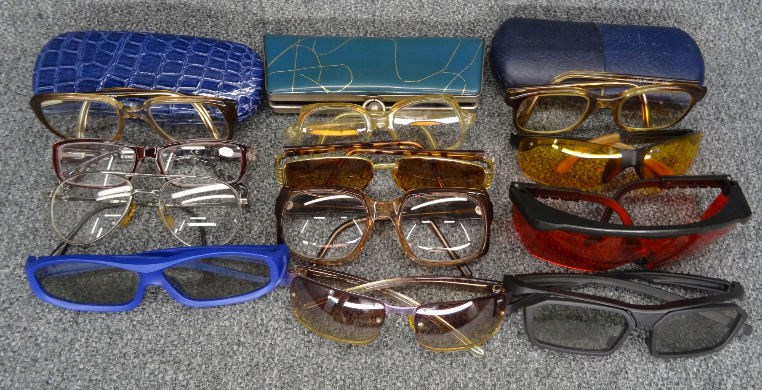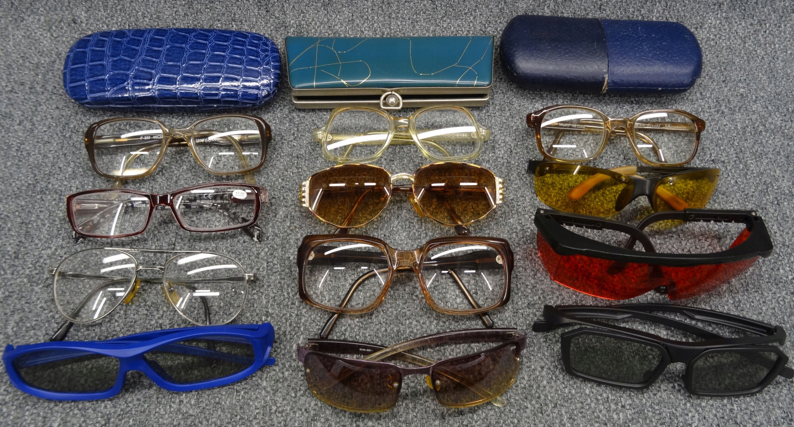 Набор из 12 очков различных моделей + 3 футляра для очков.