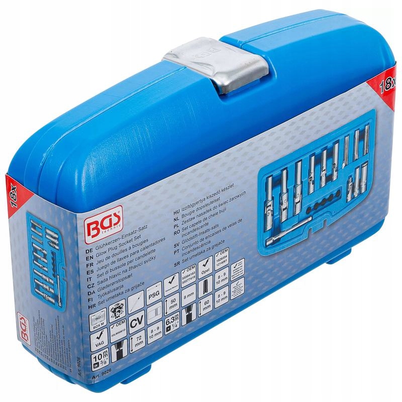 Набор из 18 головок для свечей накаливания, BGS 9026.