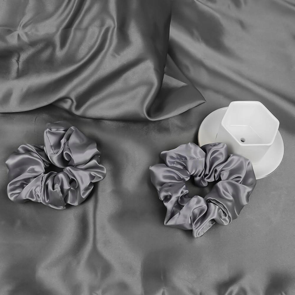 НАБОР 2x АТЛАСНЫЕ НАВУШКИ 40 x 80 ПОВЯЗКА НА ГОЛОВУ + РЕЗИНКИ ДЛЯ ВОЛОС ПОДАРОЧНО-СЕРЫЙ