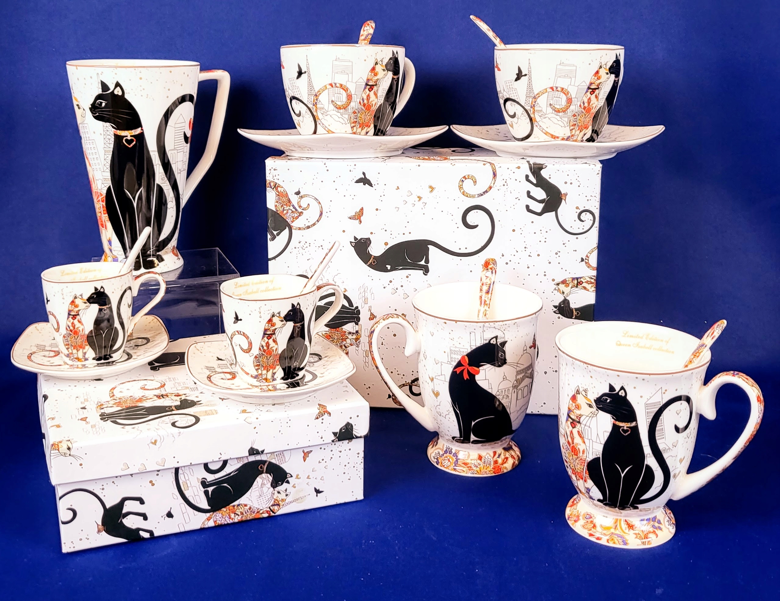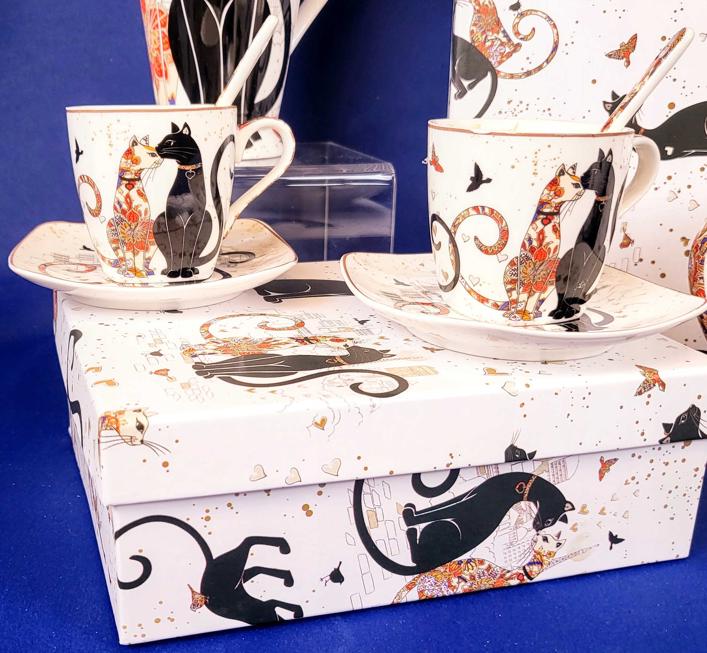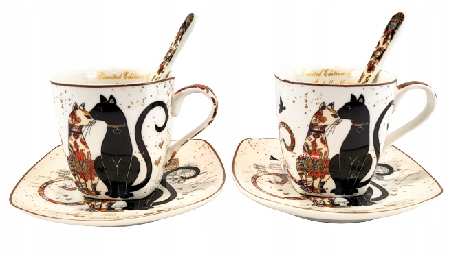Элегантный набор для эспрессо с кошачьим мотивом.