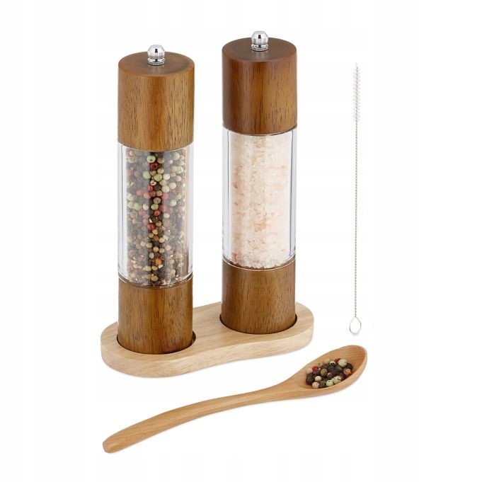Набор из 2 деревянных мельниц для соли и перца с базой