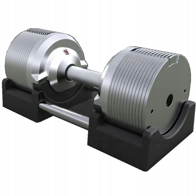НАБОР 2 СЕРЕБРЯНЫХ РЕГУЛИРУЕМЫХ гантелей 23,5 КГ + ЧЕРНАЯ ПОДСТАВКА ДЛЯ ГАНТЕЛЕЙ ДО 100 КГ