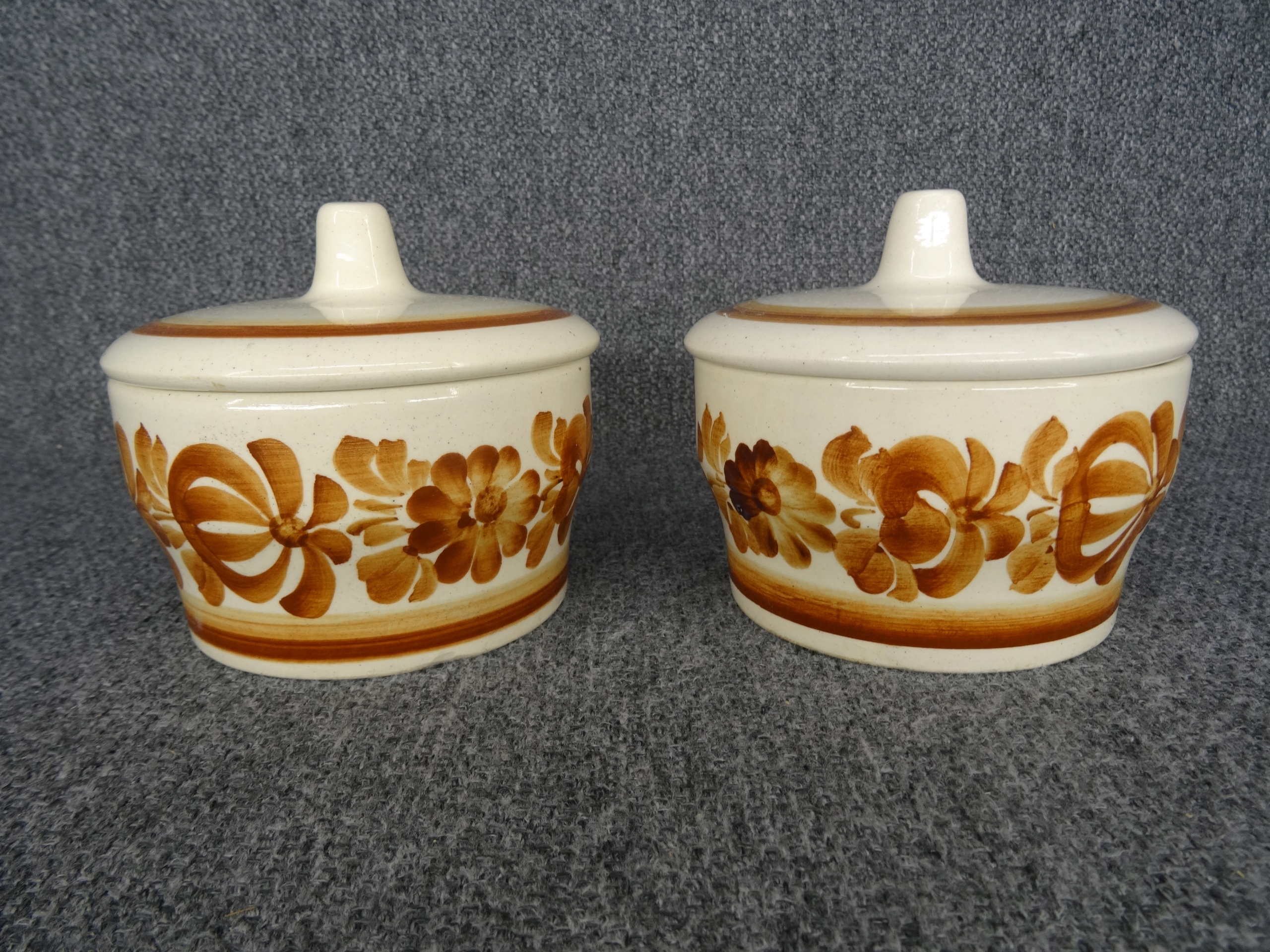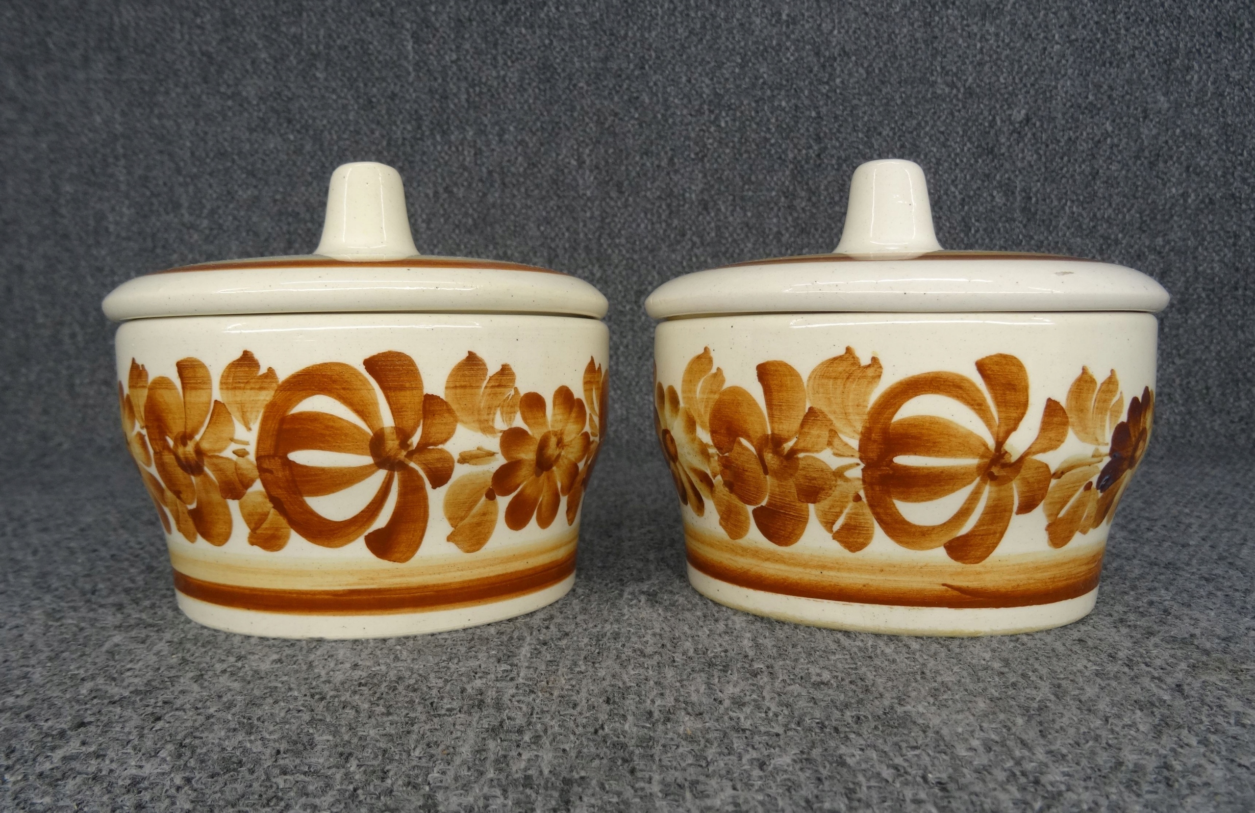Набор из 2-х предметов КУХОННЫХ КОНТЕЙНЕРОВ, фаянс Влоцлавек. Изделия с ручной росписью. На дне сосудов клеймо художницы Мариолы Ульрих.