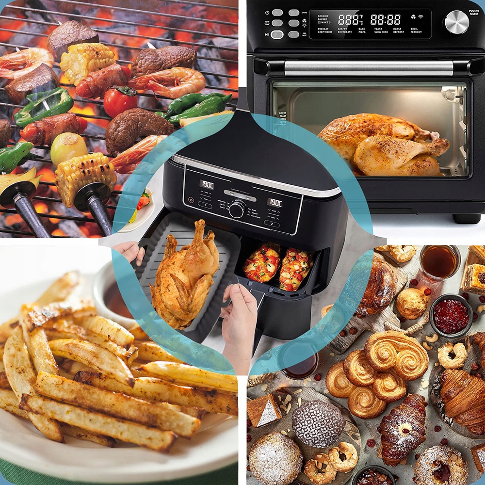 🍲【Высококачественный материал】Изготовленный из 100% пищевого силикона, вы можете с полной уверенностью наслаждаться свежеиспеченными вкусными блюдами. Выдерживает температуру до 230°C. Подходит для аэрофритюрницы Ninja с двойной корзиной объемом 8 л или любой другой аэрофритюрницы подходящего размера.