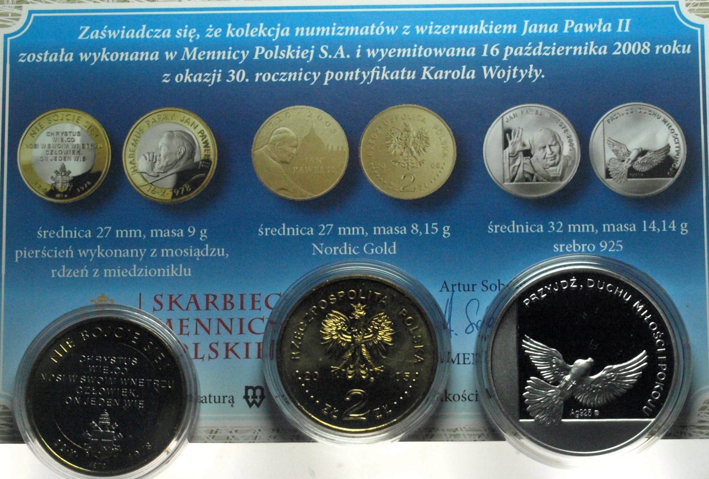 набір 2008 ІВАН ПАВЛО II x3 Монетний двір СРІБЛО