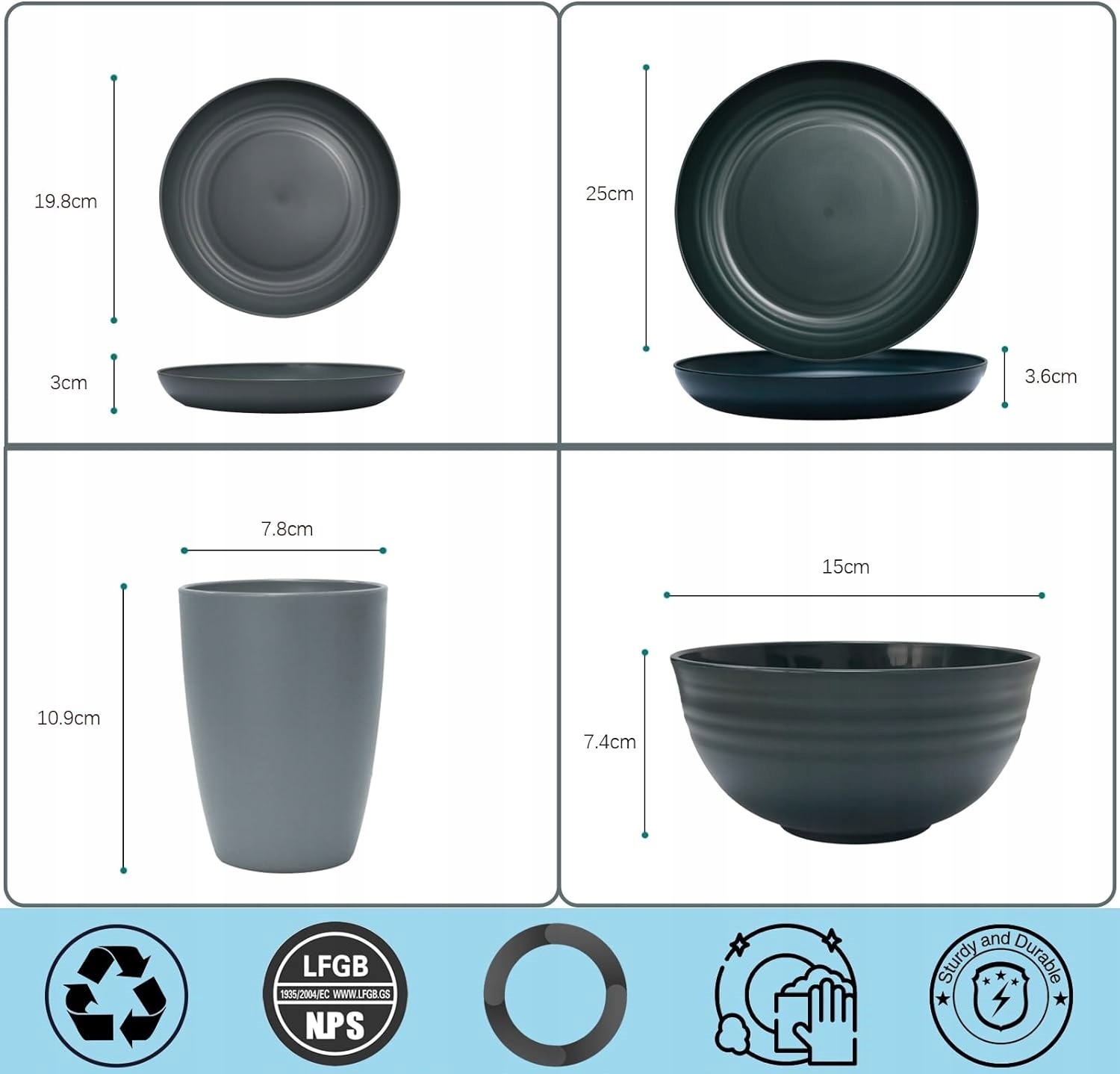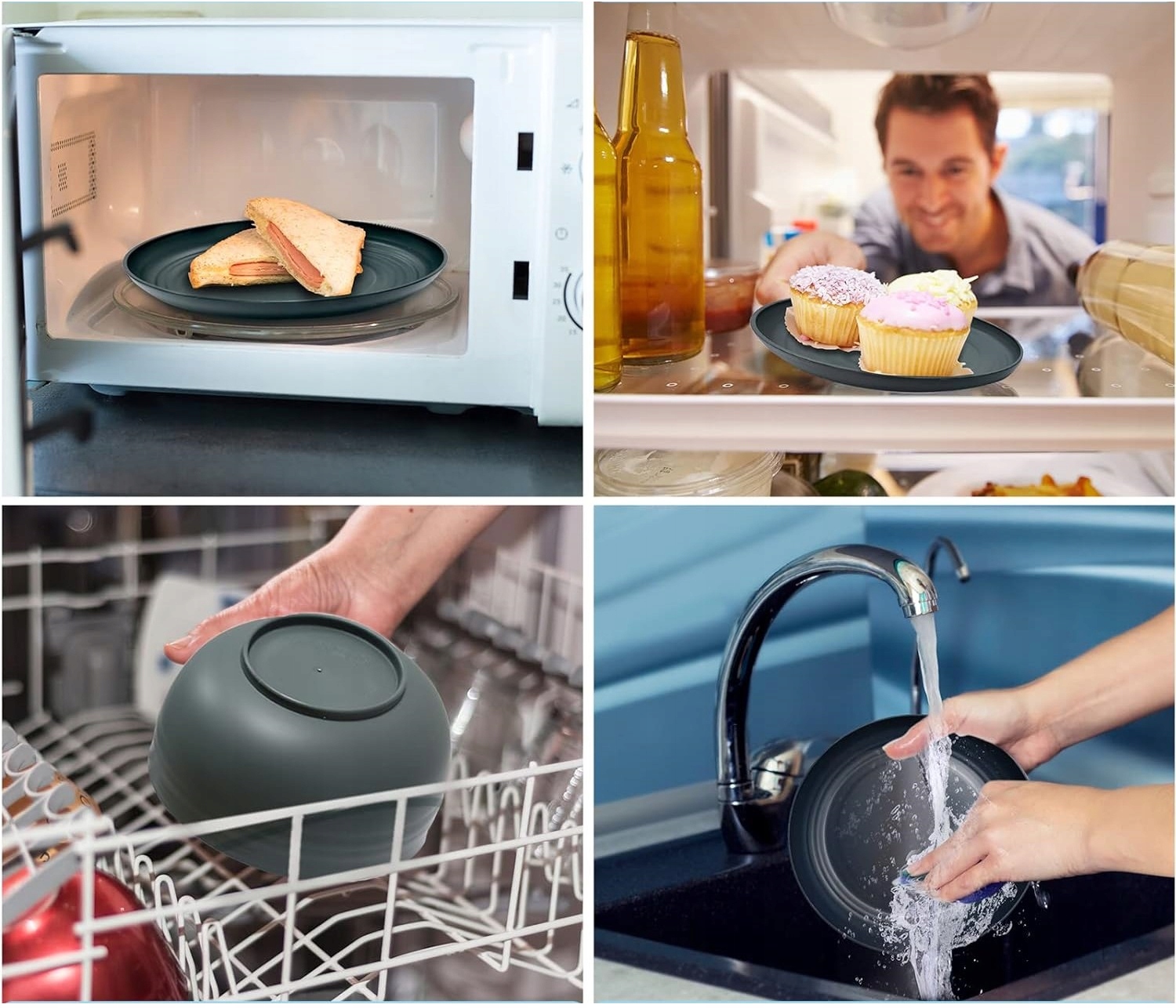 ✅Легкий и прочный: Наш небьющийся набор посуды очень легкий и прочный, рассчитан на длительный срок службы. Наборы тарелок и мисок устойчивы к падениям, трещинам и сколам, что делает их безопасными для каждого. Прекрасная альтернатива керамической, стеклянной и другой пластиковой посуде.