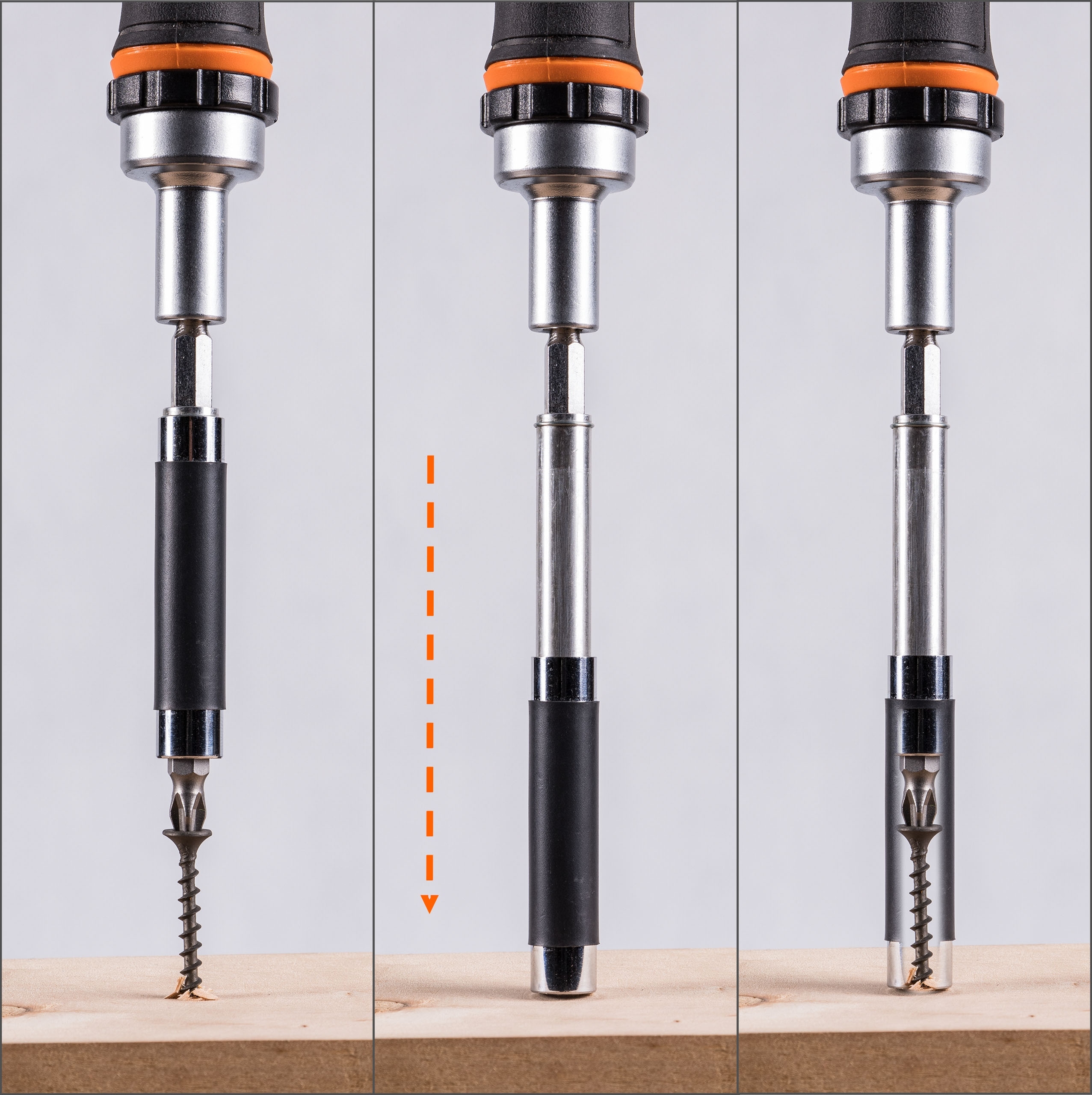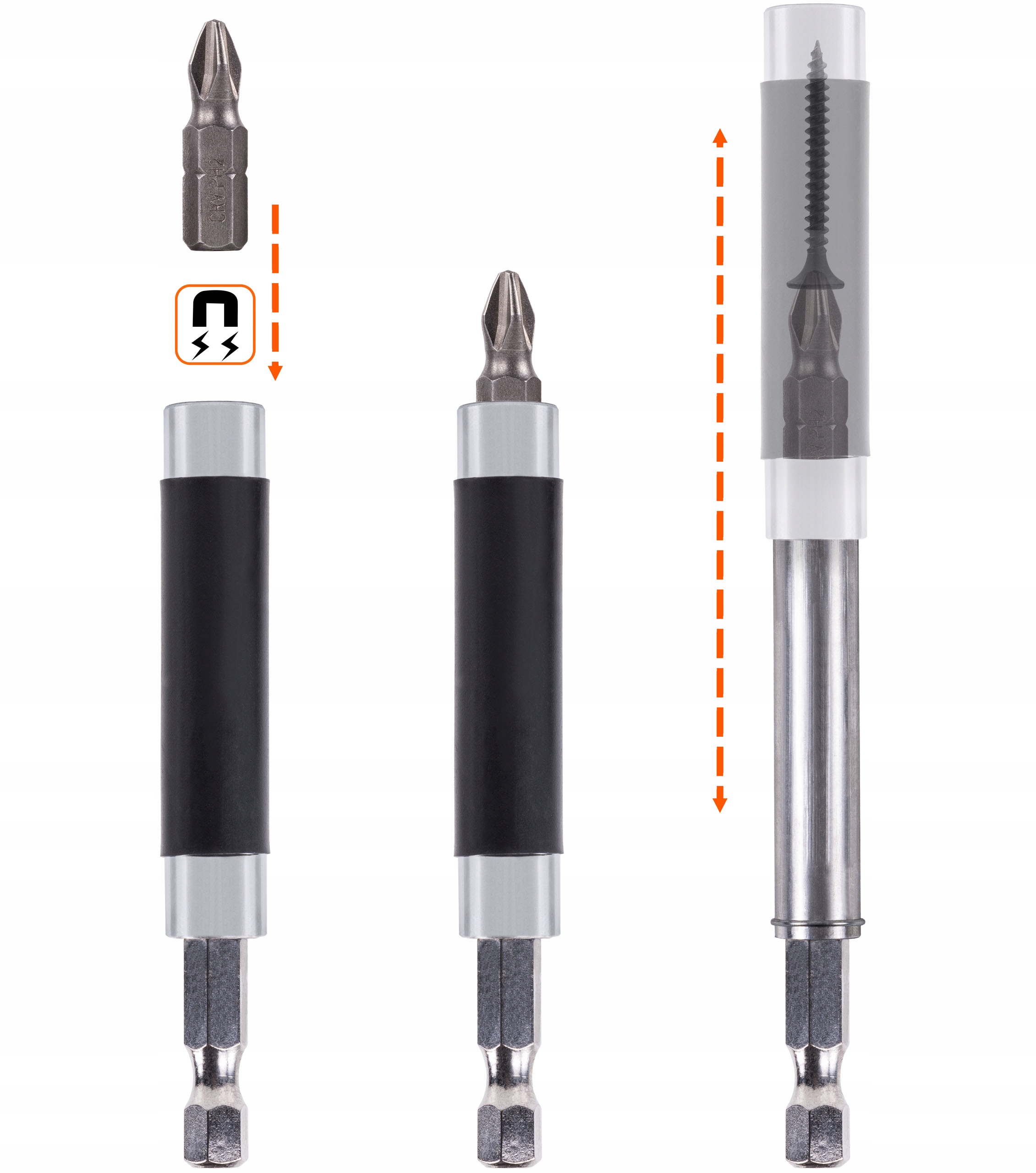 ✅ Шестигранный держатель с магнитом и направляющей предотвращает выскальзывание бит и шурупы во время работы