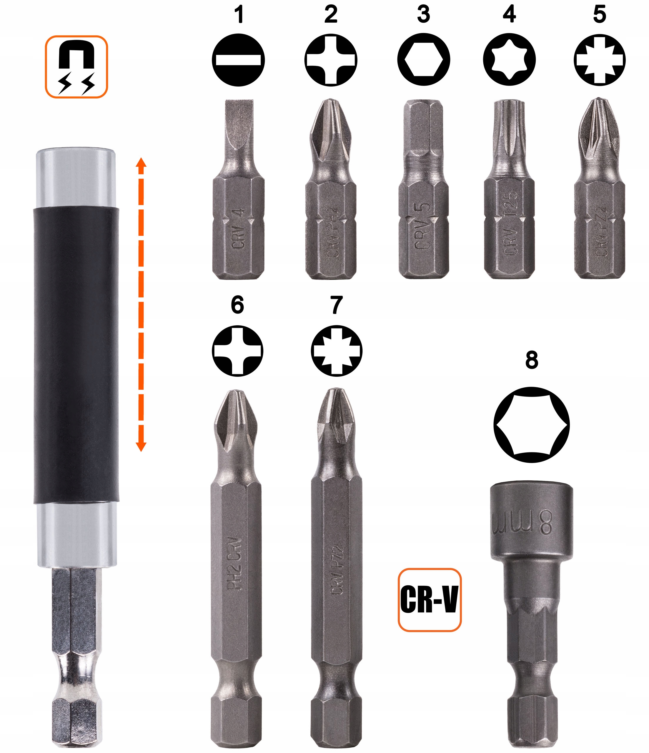 ✅ Биты изготовлены из прочной стали CR-V