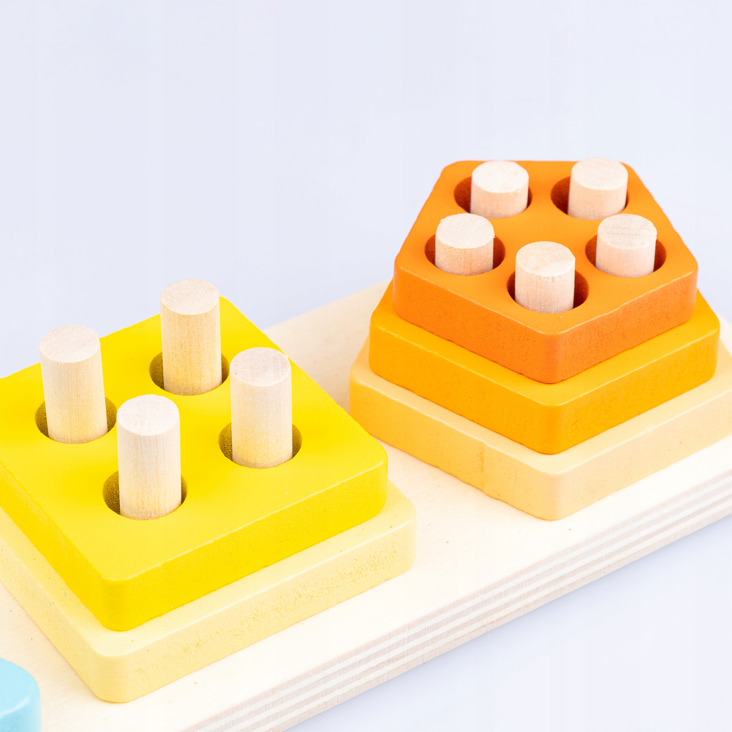 Управление деревянными фигурами и сопоставление их с соответствующими отверстиями развивает моторику детей и точность движений.