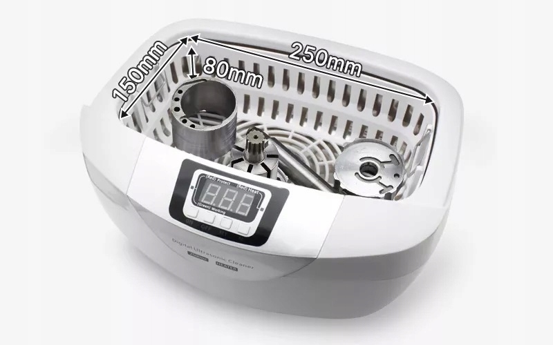 Ультразвуковой очиститель ZX-2500T представляет собой усиленную модель одного из самых популярных очистителей, доступных на рынке, 4820. Устройство изготовлено из нержавеющей стали SUS304 и устойчивого АБС-пластика. Стиральная машина емкостью 2,5 литра и размерами бака 250х150х80мм. Устройство имеет регулируемое время работы в 7 режимах, возможность подогрева жидкости и дегазации ее. Нагрев жидкости и ее дегазация улучшают процесс кавитации в процессе эксплуатации. Устройство с высокой очищающей способностью. Два пьезоэлектрических преобразователя общей мощностью 120 Вт. Ультразвуковые очистители — это устройства, использующие явление кавитации для тщательной и эффективной очистки различных предметов. Вода или специальные чистящие растворы подвергаются ультразвуковым колебаниям, создаваемым пьезоэлектрическими преобразователями. Благодаря явлению кавитации, то есть образованию и лопанию вакуумных пузырьков в жидкости, ультразвуковые очистители способны удалять загрязнения с поверхностей даже в трудно поддающихся очистке углах.