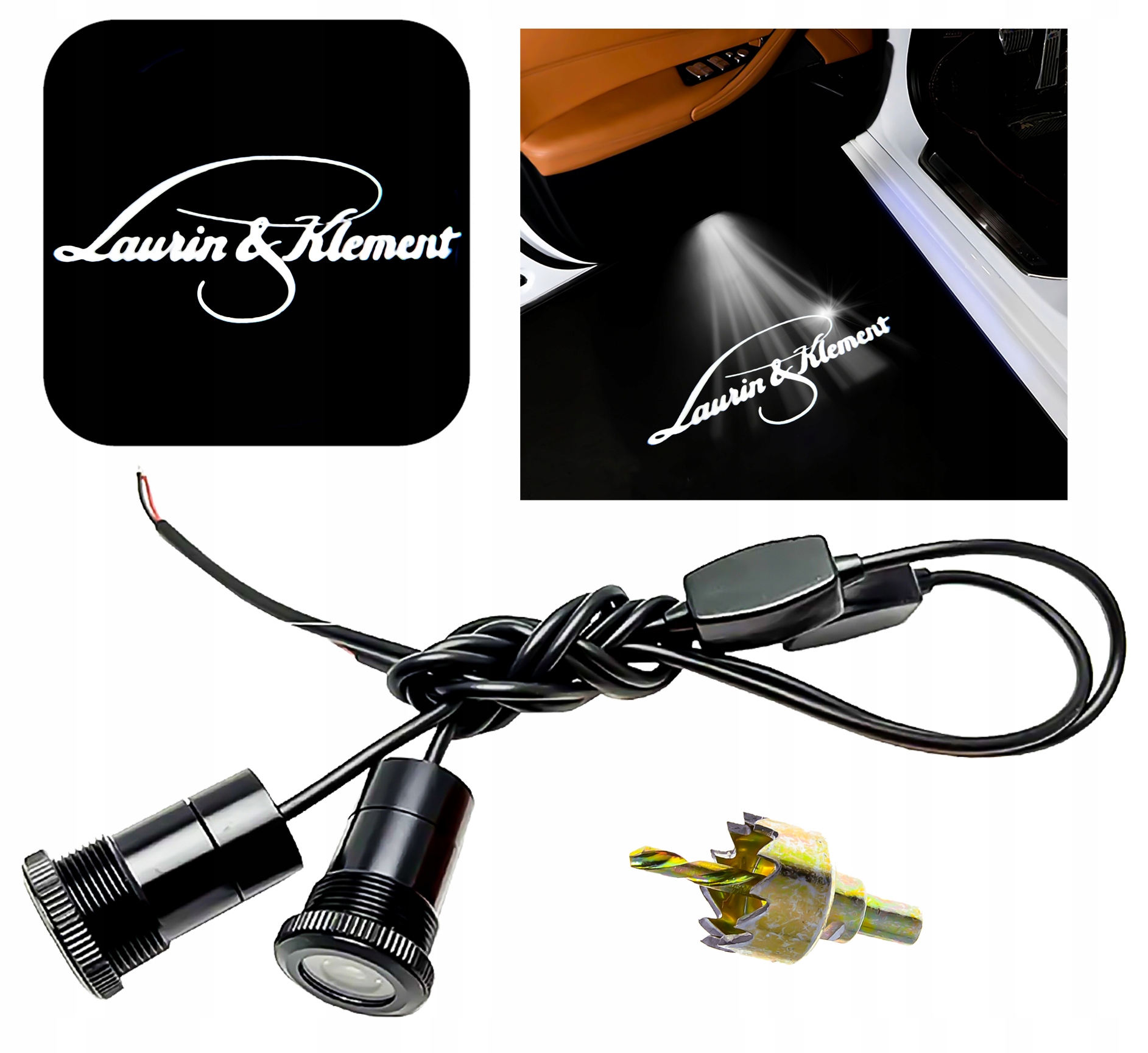 Проекторы требуют сборки, которая включает в себя сверление отверстий и подключение к источнику питания 12 В (9–24 В) в автомобиле. Хотя установка требует базовых технических навыков, конечный результат, безусловно, будет стоить затраченных усилий. Точное расположение проекторов обеспечит идеальное отображение логотипа Laurin Klement каждый раз, когда вы открываете дверь автомобиля.