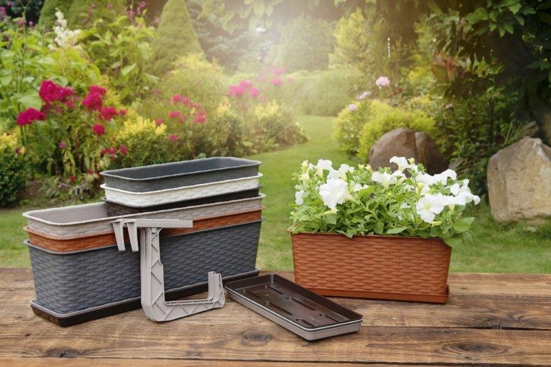 Выполненные из прочного пластика держатели предназначены для балкона. коробки. Благодаря тому, что ручки регулируются, их можно легко адаптировать к различным типам балюстрад и поручней. Для горшков длиной не более 80 см достаточно двух подвесов.