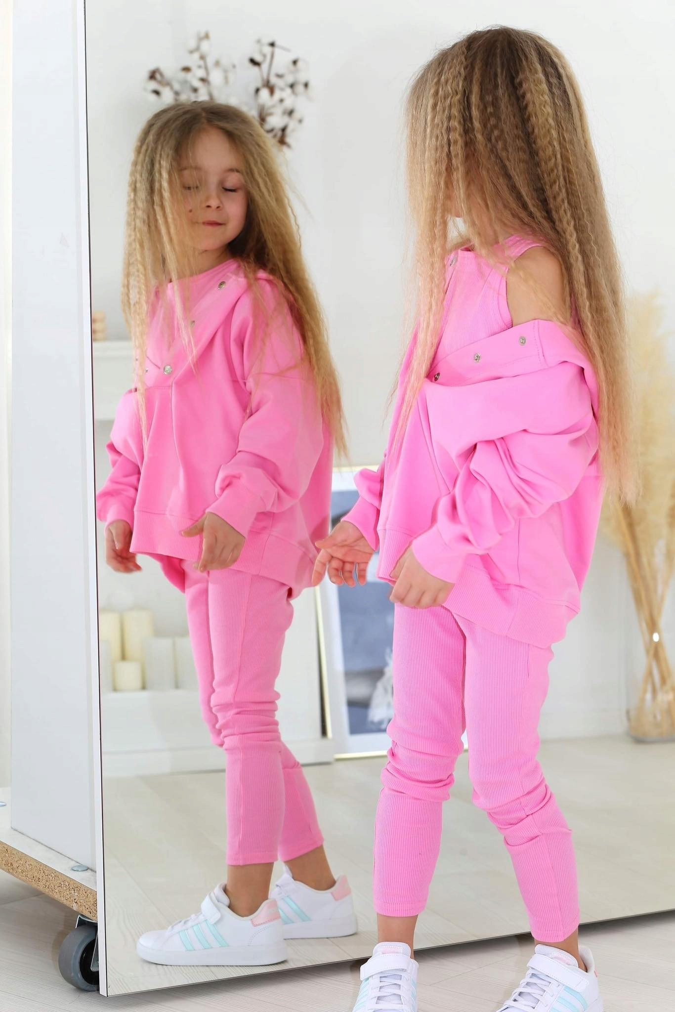 Красивый розовый цвет комплекта делает его идеальным для весны и лета. Это отличный вариант для девушки, которая хочет чувствовать себя комфортно и модно одновременно.