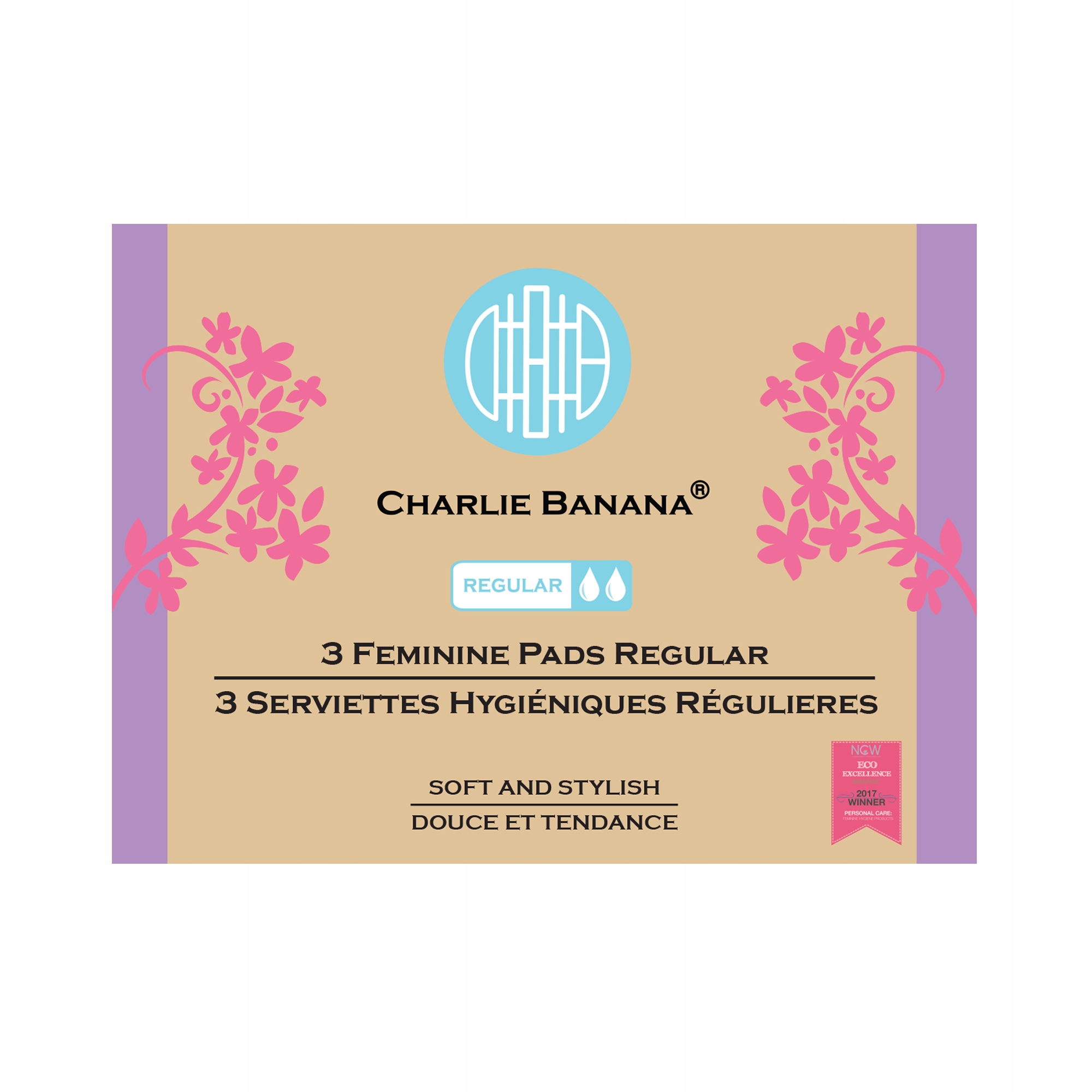 Гигиенические прокладки Charlie Banana можно приобрести в наборе: 3 прокладки + удобная косметичка для прокладок. Он изготовлен из водонепроницаемой ткани и застегивается на молнию. В нем вы можете легко хранить использованные гигиенические прокладки.