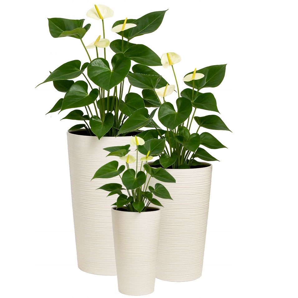 НАБОР 3 шт. ЦВЕТОЧНЫЙ ГОРШОК САДОВЫЙ + ВСТАВКА, ВЫСОКИЙ, БОЛЬШОЙ, БЕЛЫЙ 37+47+57см