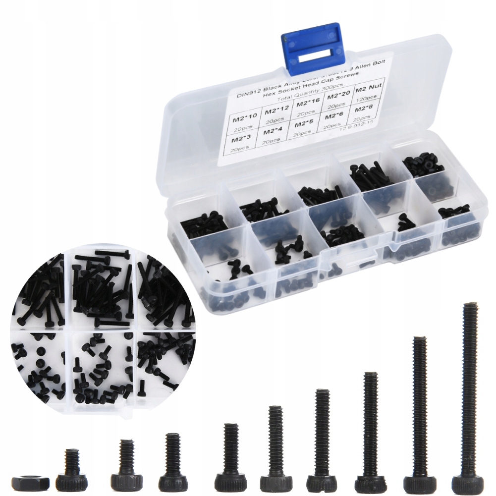 ВИНТЫ И ГАЙКИ 300 ШТ. M2 X 3-20MM