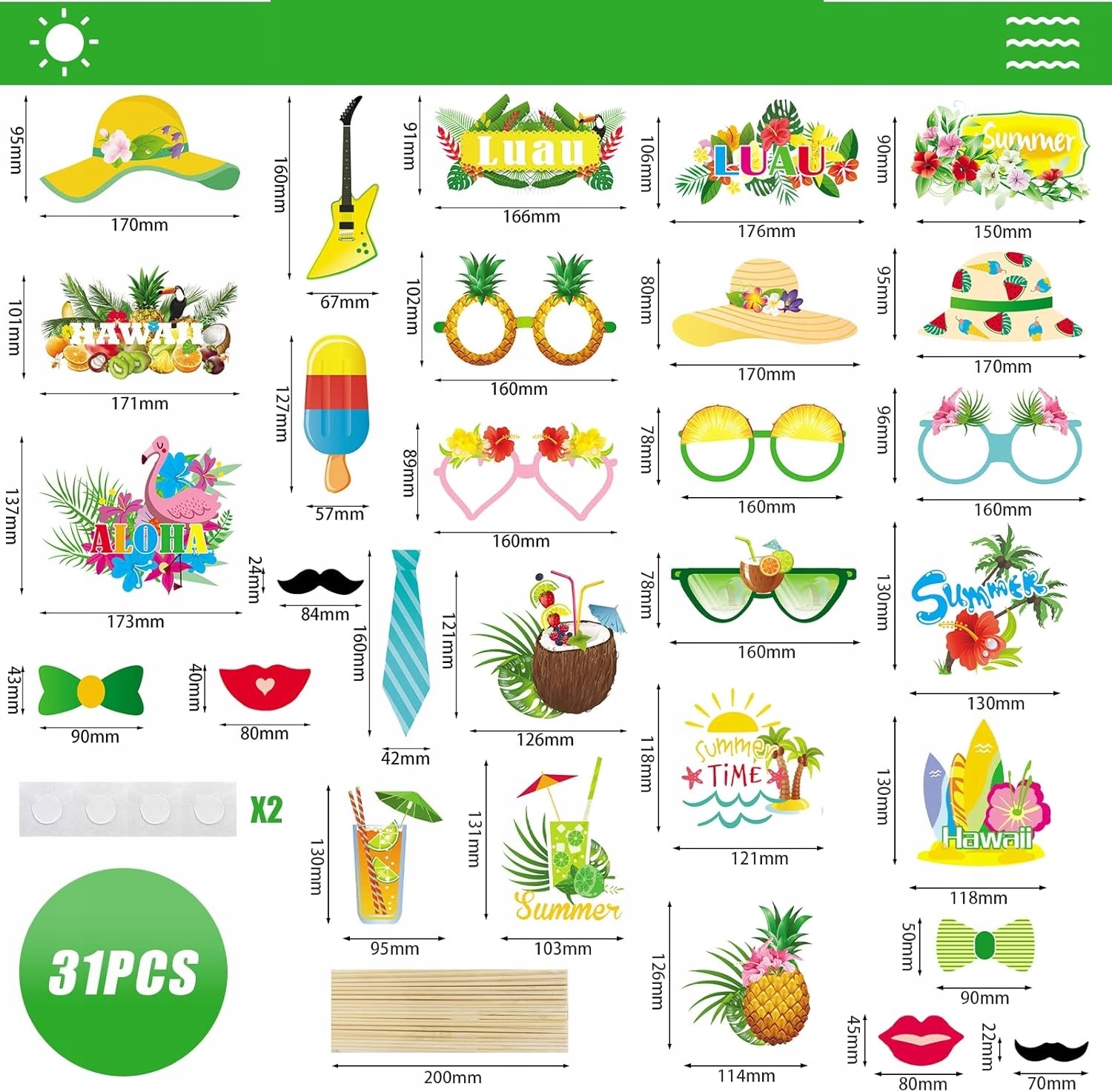 НАБОР 31 ШТ. - ФОТОРЕКВИЗИТ, СВАДЕБНЫЕ МАСКИ НА ДЕНЬ РОЖДЕНИЯ, ГАВАЙИ, ФОТОБУТИНКА
