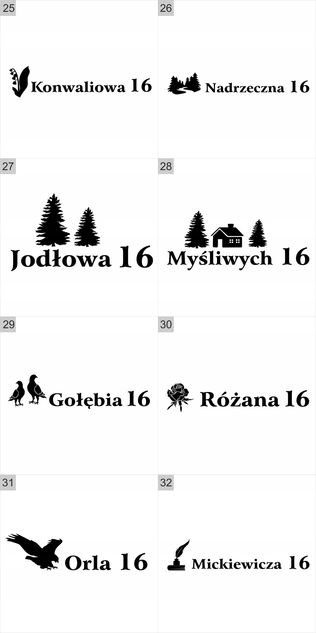 Если все буквы в названии улицы должны быть написаны заглавными буквами (одной высоты), сообщите нам об этом. По умолчанию установлена высота 13 см только для первой (заглавной) буквы, а высота остальных букв непропорциональна.