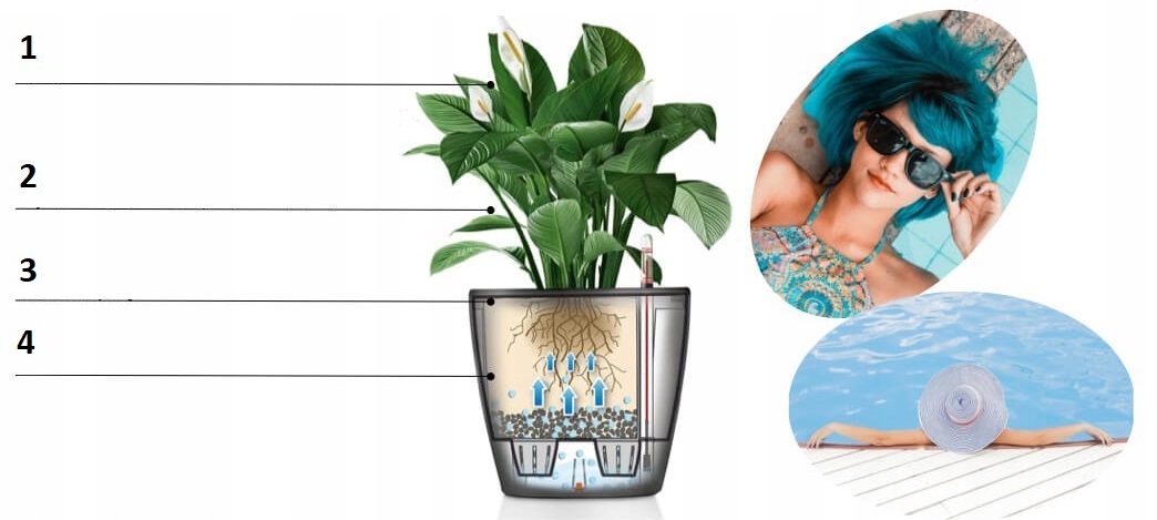 🌼 Между горшком и крышкой имеется пространство для предотвращения перелива, что также обеспечивает достаточную влажность для корней. Дополнительная сливная пробка позволяет быстро избавиться от лишней воды