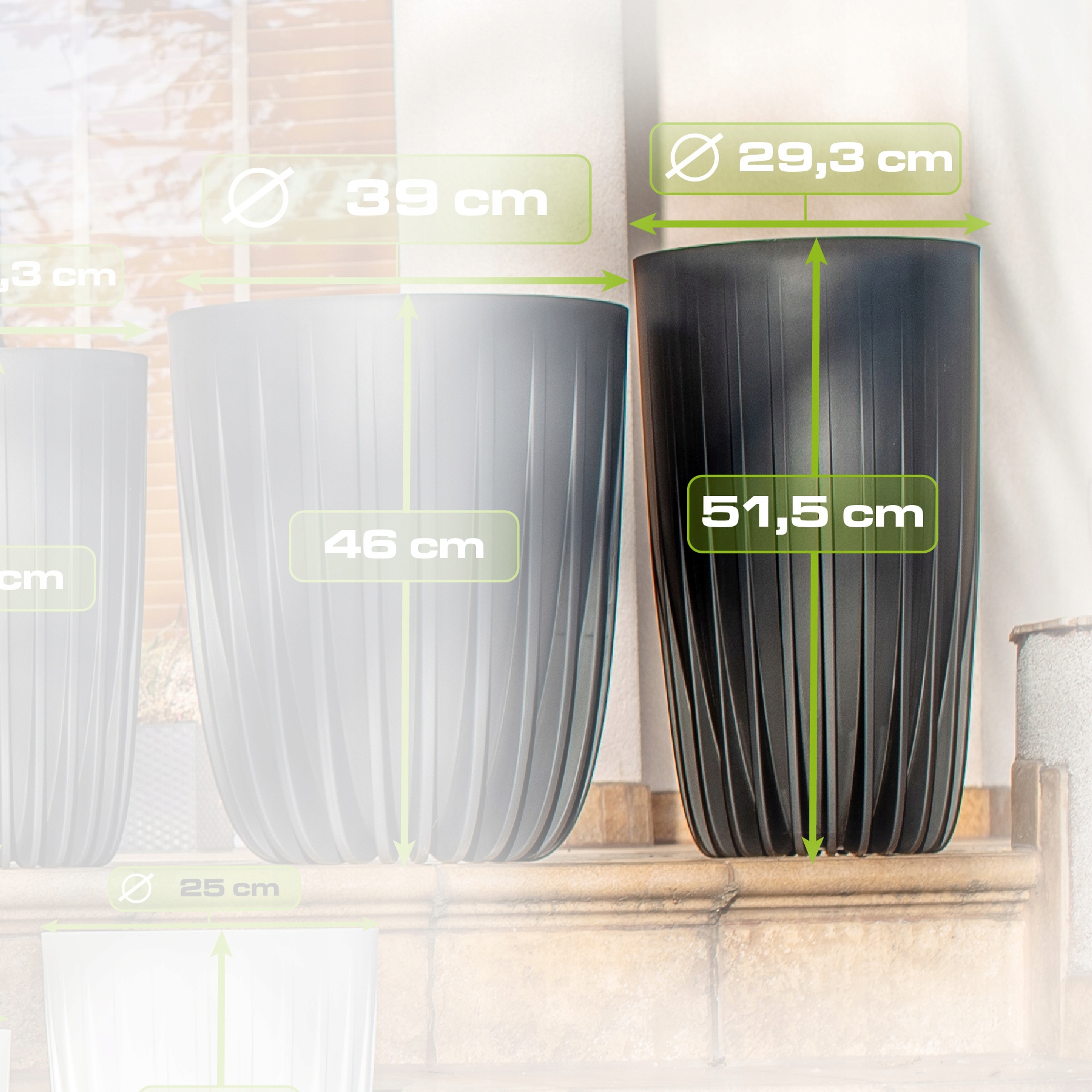 НАБІР 3x КВІТКОВИЙ ГОРЗИК ВСТАВКА ЧАША ПІДСТАВКА ДЛЯ КВІТІВ HIGH SLIM MIRA 30 x 51,5 см