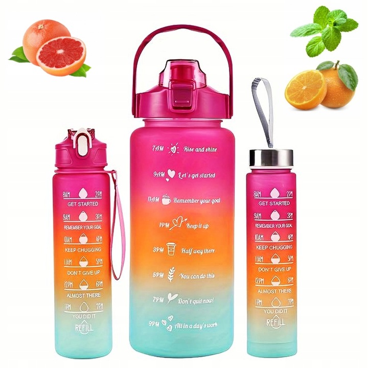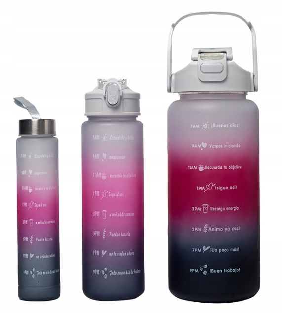 НАБІР 3x ПЛЯШКА ВОДИ СПОРТИВНА МОТИВАЦІЙНА ПЛЯШКА з мірною чашкою для води