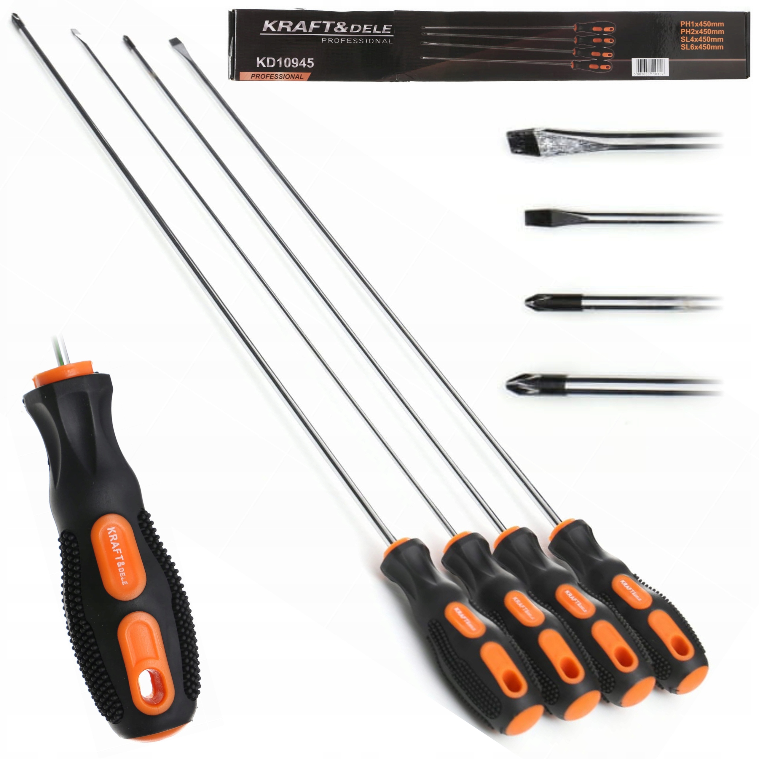 НАБОР ИЗ 4 ПРЕДМЕТОВ. ДЛИННЫЕ ОТВЕРТКИ 450 мм SL4 SL6 PH1 PH2 Kraft&Dele KD10945