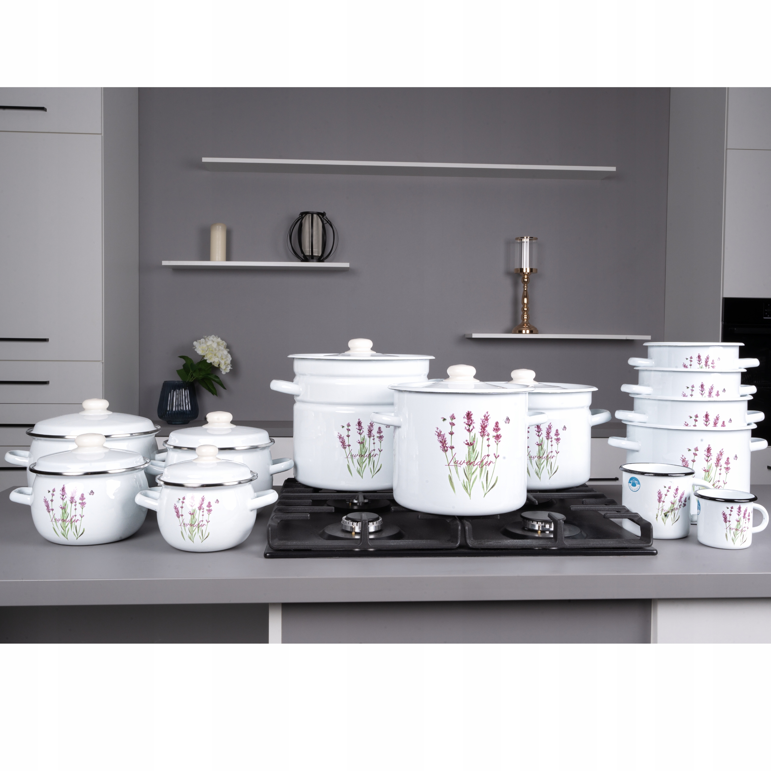 KOMPLET 4 GARNKÓW EMALIOWANYCH + POKRYWY 8EL INDUKCJA GAZ GARNKI EMALIOWANE