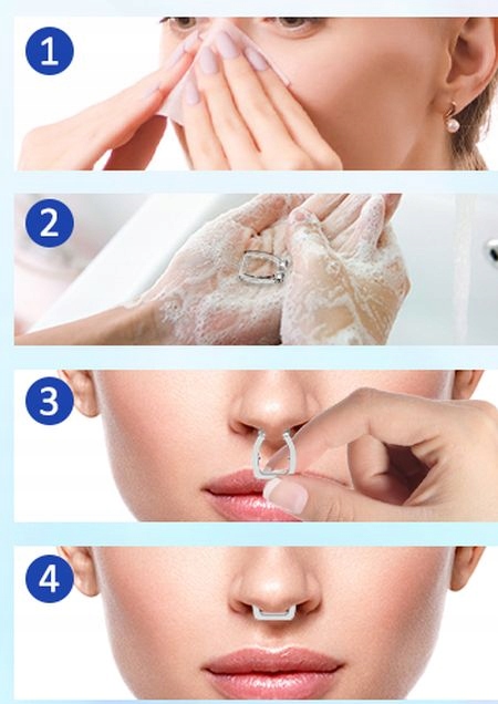 Как использовать: Вытяните гибкие концы зажима, аккуратно вставьте его в ноздри и расположите удобно. В конечном положении прижмите ножки зажима к стенке носа, чтобы надежно зафиксировать его. Клипса прозрачная, поэтому ее практически не видно. Подходит к любой форме носа. Он безопасен, удобен и прост в использовании, рассчитан на многократное использование.