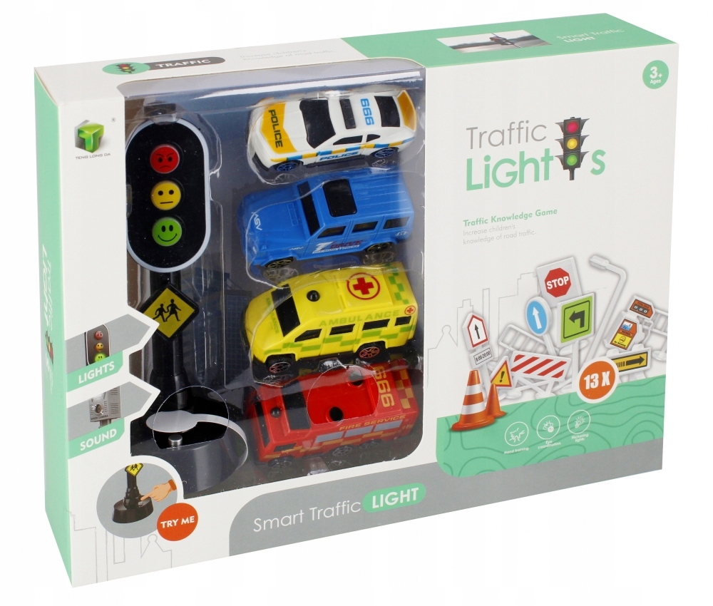 Сигнал меняет цвет при нажатии кнопки на базе, поэтому дети смогут изучить правила дорожного движения.