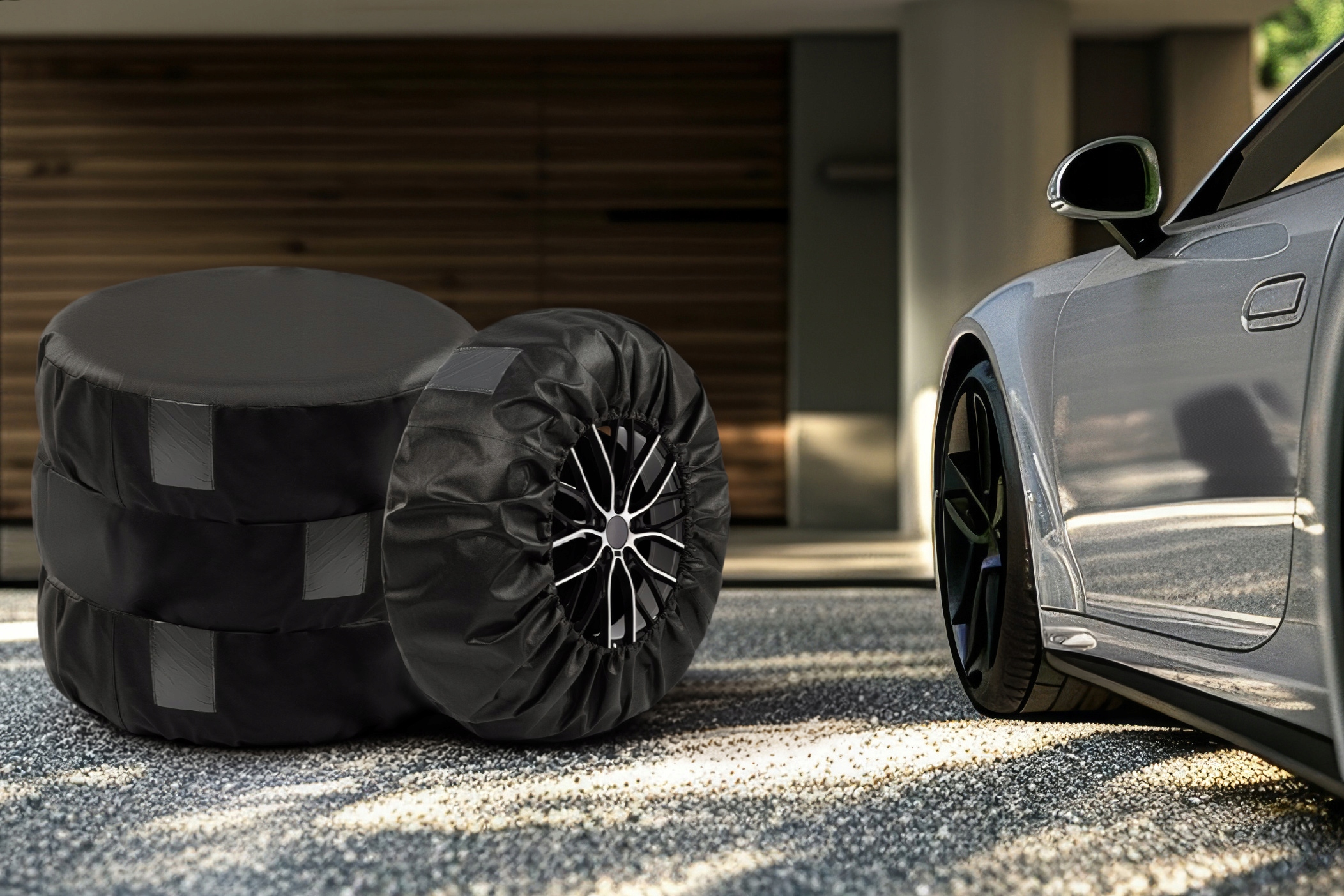 Все швы чехла спрятаны внутрь, что придает ему эстетичный вид. Дополнительно имеется эластичная манжета, обеспечивающая быструю установку на колесо, и дополнительное окошко для описания размера колеса.