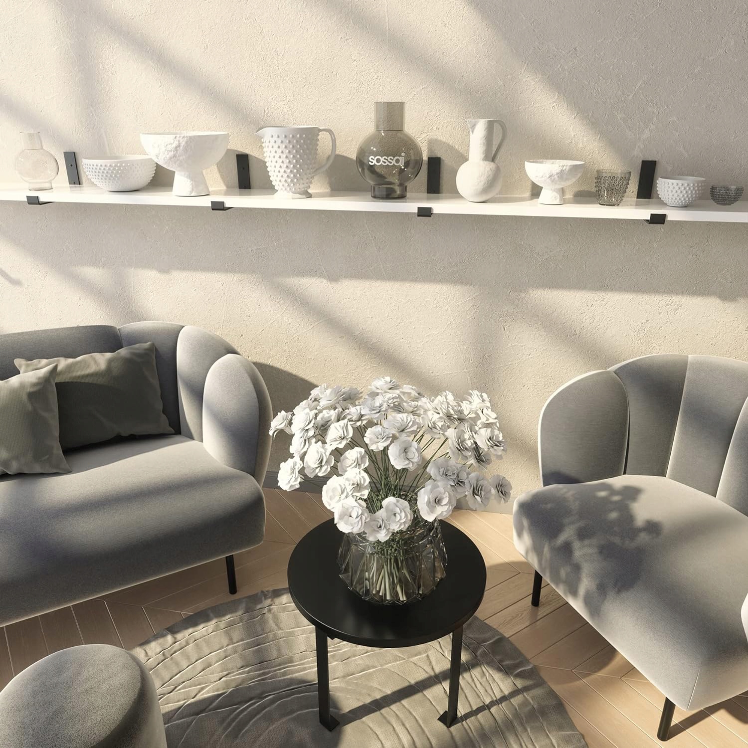 Опоры изготовлены из высококачественной стали, устойчивой к царапинам, коррозии и изменению цвета. Прочная треугольная конструкция обеспечивает высокую несущую способность, что делает ее идеальной для полок в гараже или на кухне.