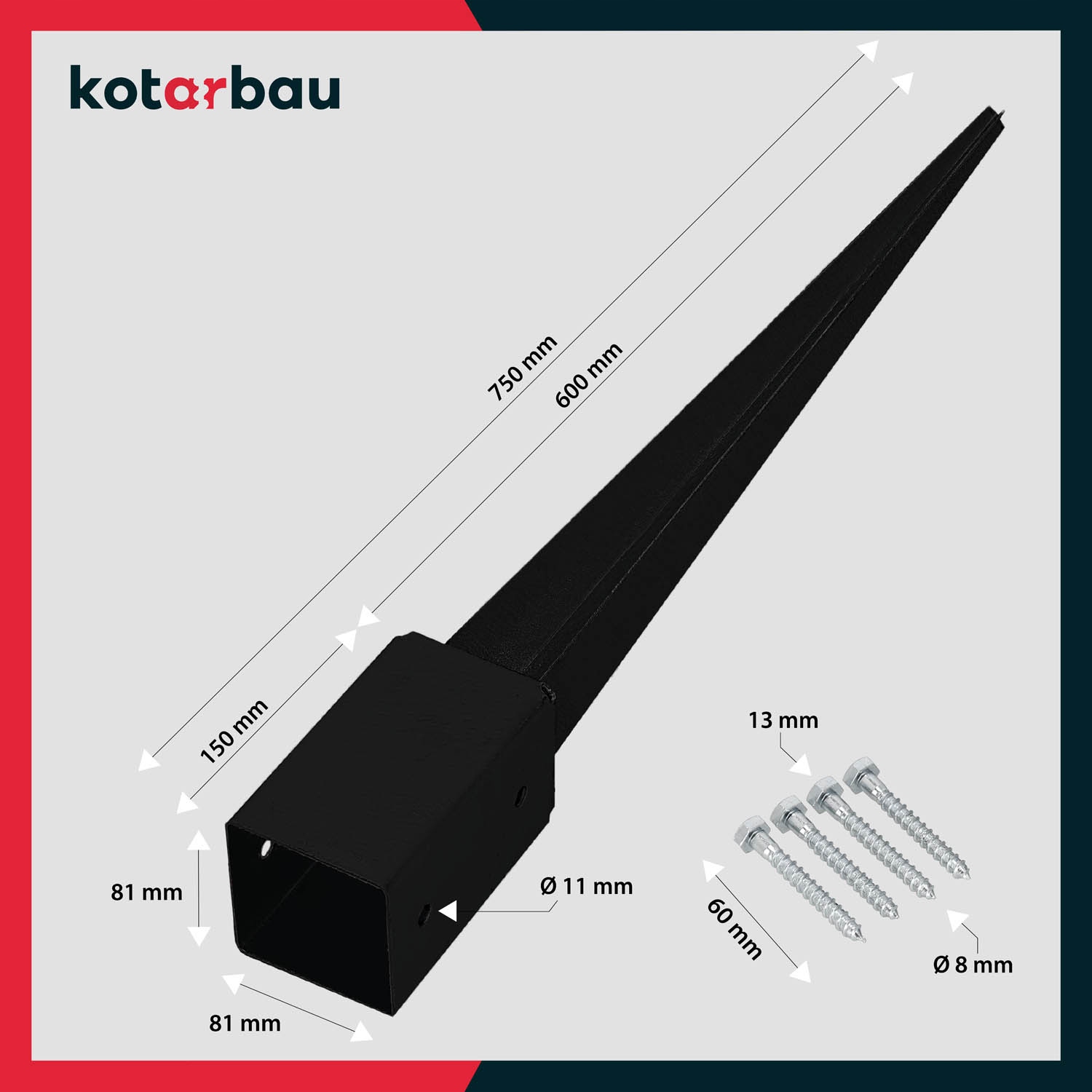 НАБОР 4X БАЗОВОГО ЯКОРЯ ДЛЯ СТОЙКИ, ЧЕРНАЯ СТАЛЬ, 81X81X750 ПЕРГОЛА, ПРИВОДНАЯ БЕСЕДКА