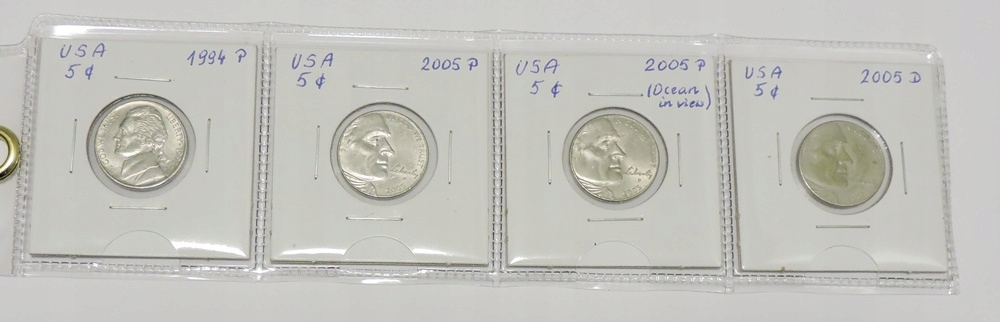 Набор из 4 монет номиналом 5 центов США (каждая разная)